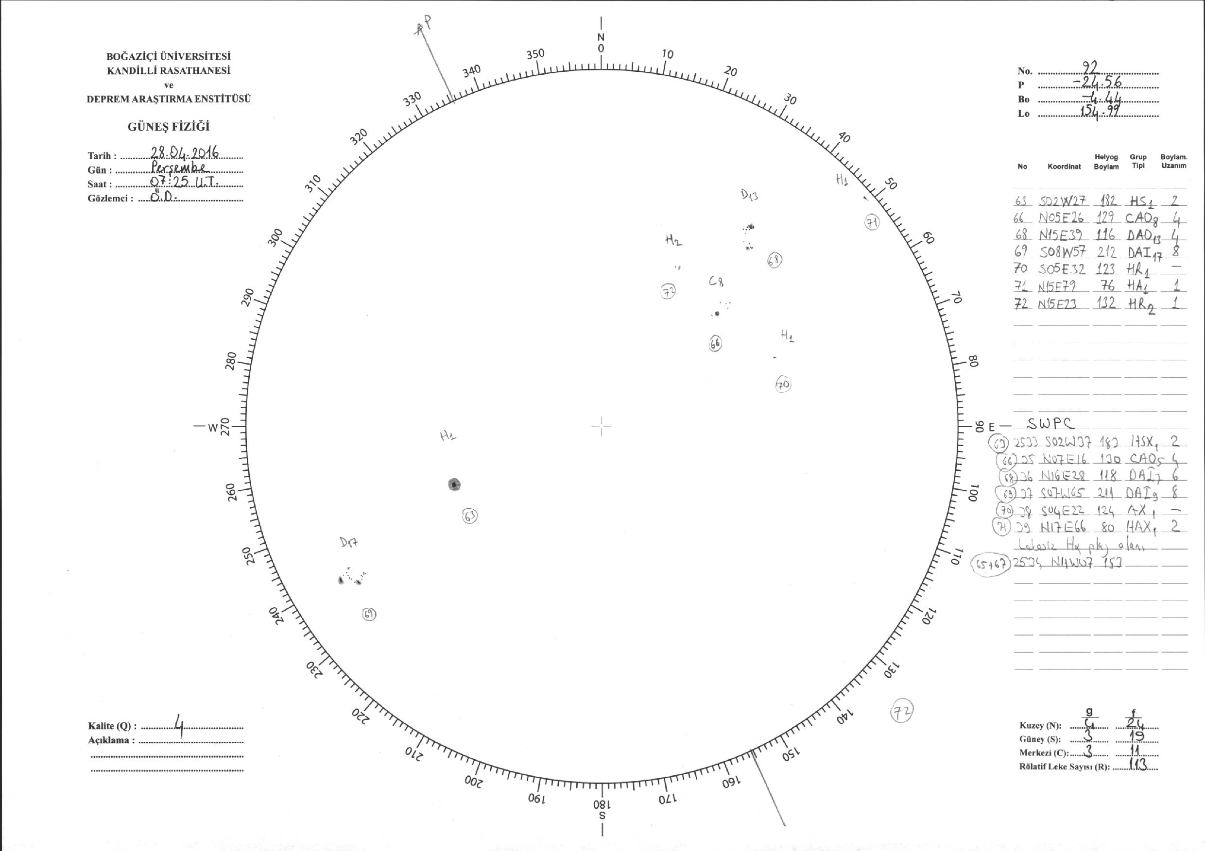 Güneş Lekesi Çizimi - 28.04.2016