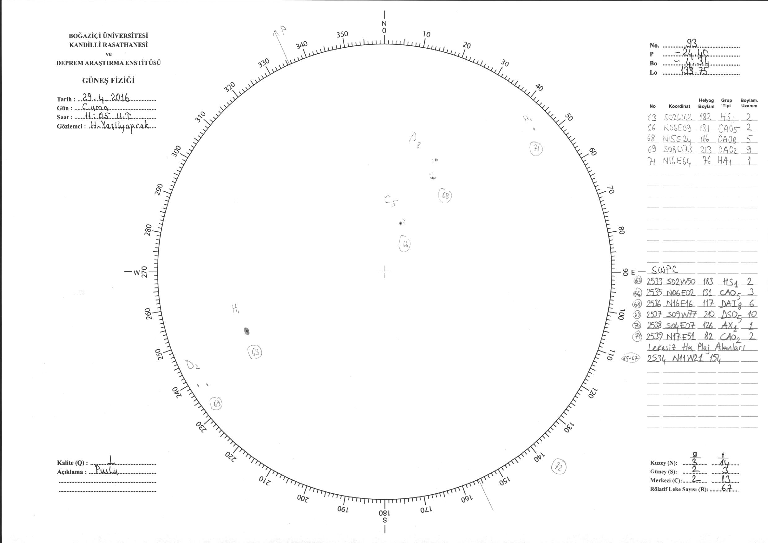 Güneş Lekesi Çizimi - 29.04.2016