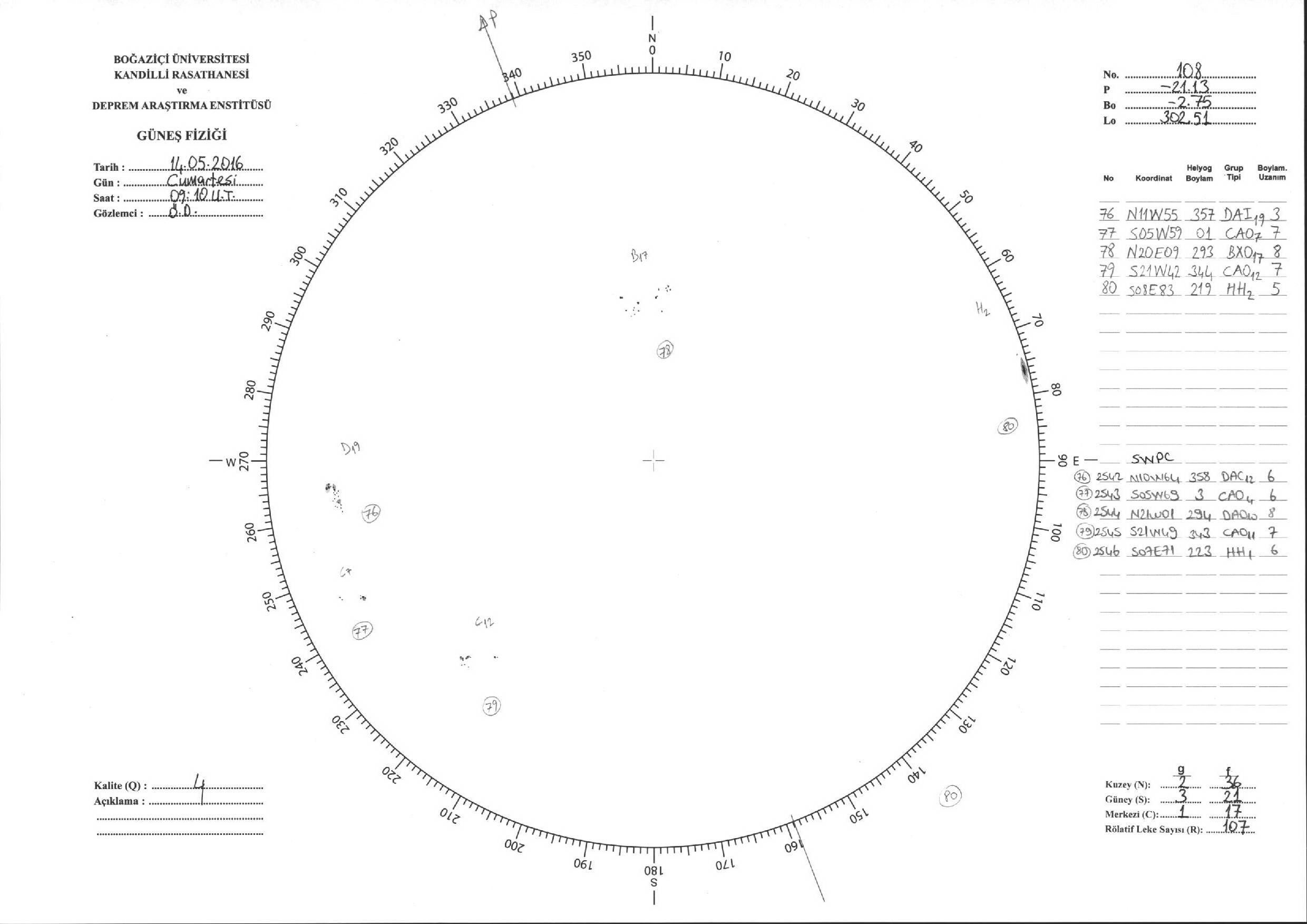 Güneş Lekesi Çizimi - 14.05.2016