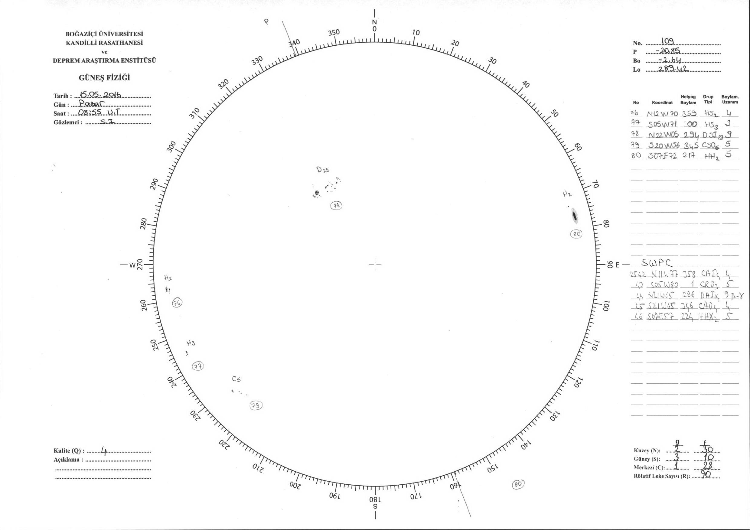 Güneş Lekesi Çizimi - 15.05.2016
