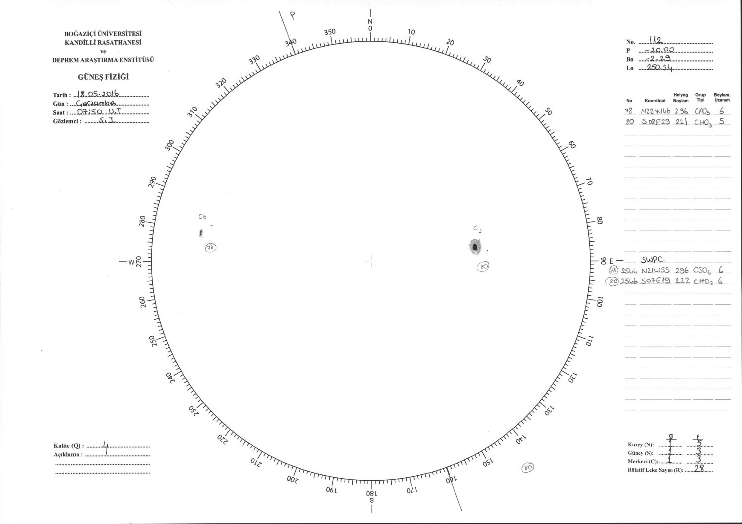 Güneş Lekesi Çizimi - 18.05.2016