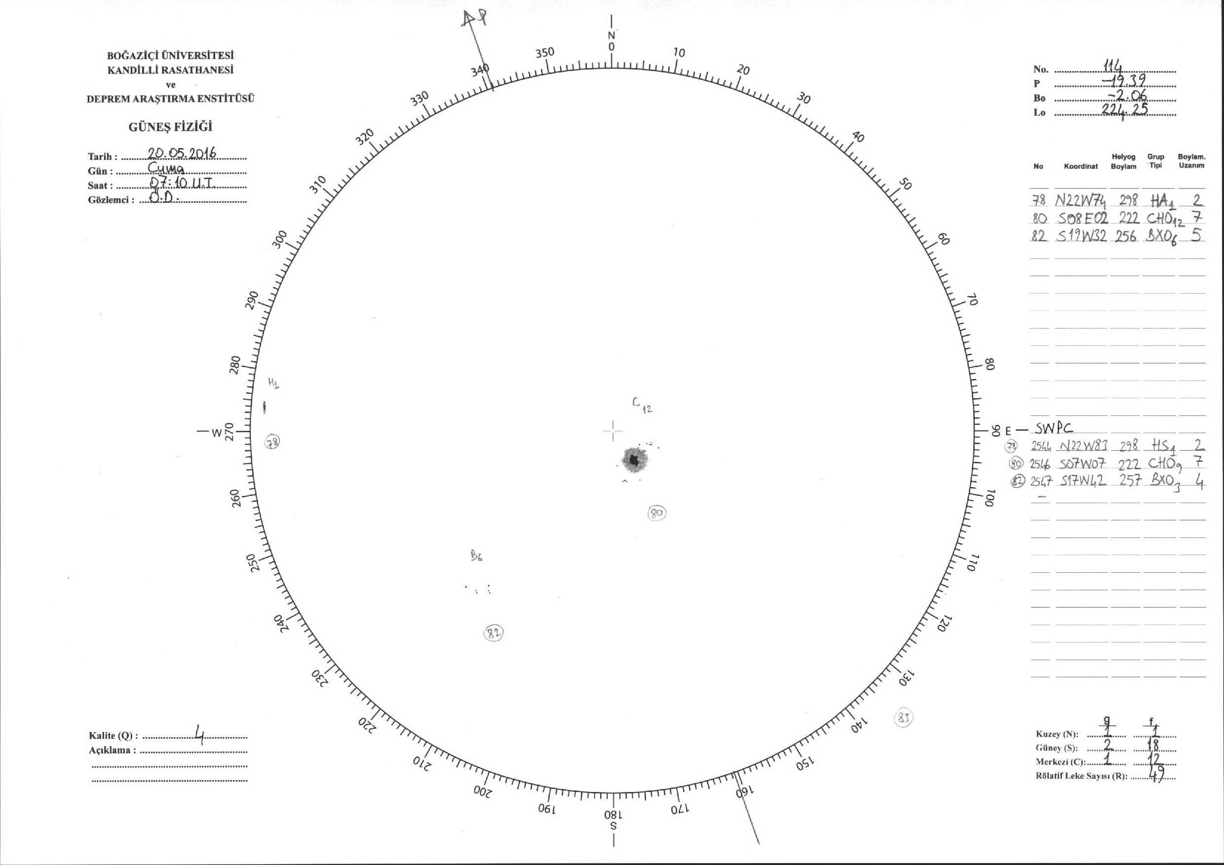 Güneş Lekesi Çizimi - 20.05.2016
