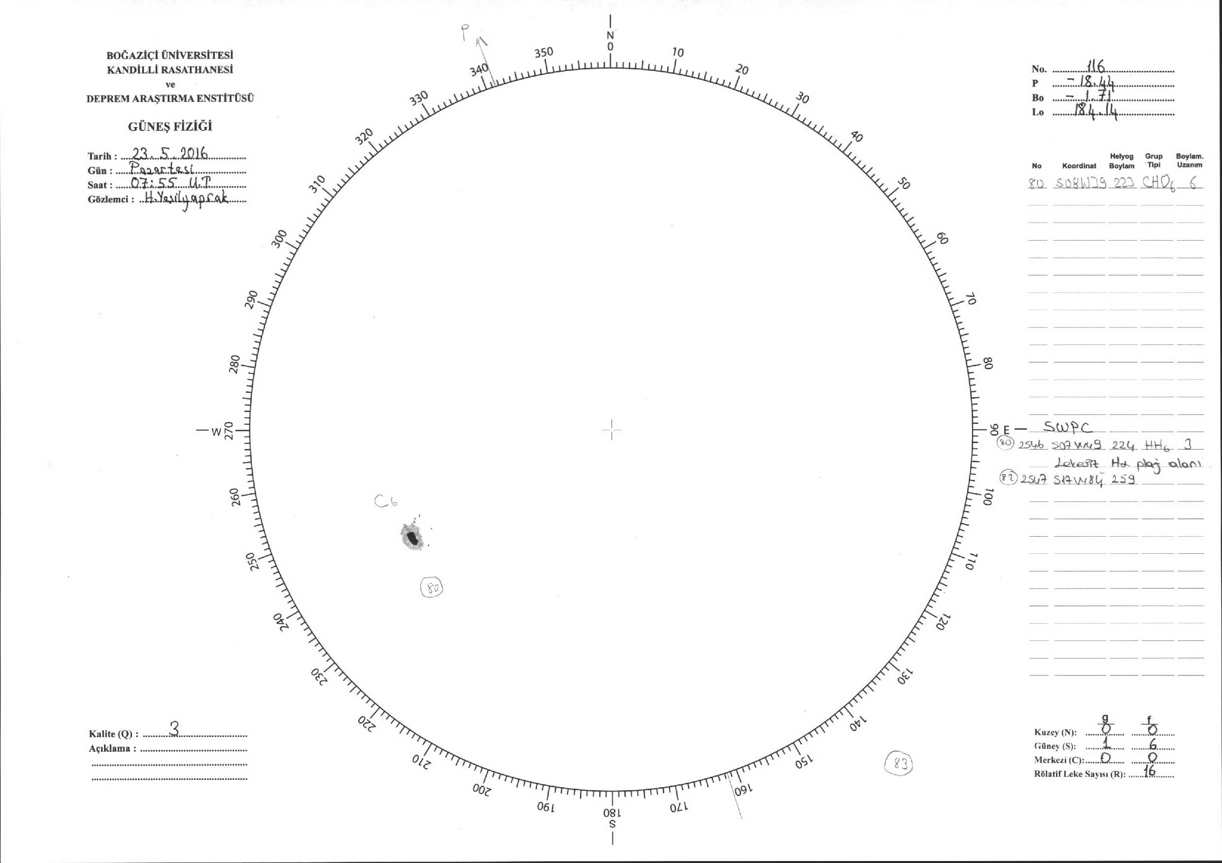 Güneş Lekesi Çizimi - 23.05.2016