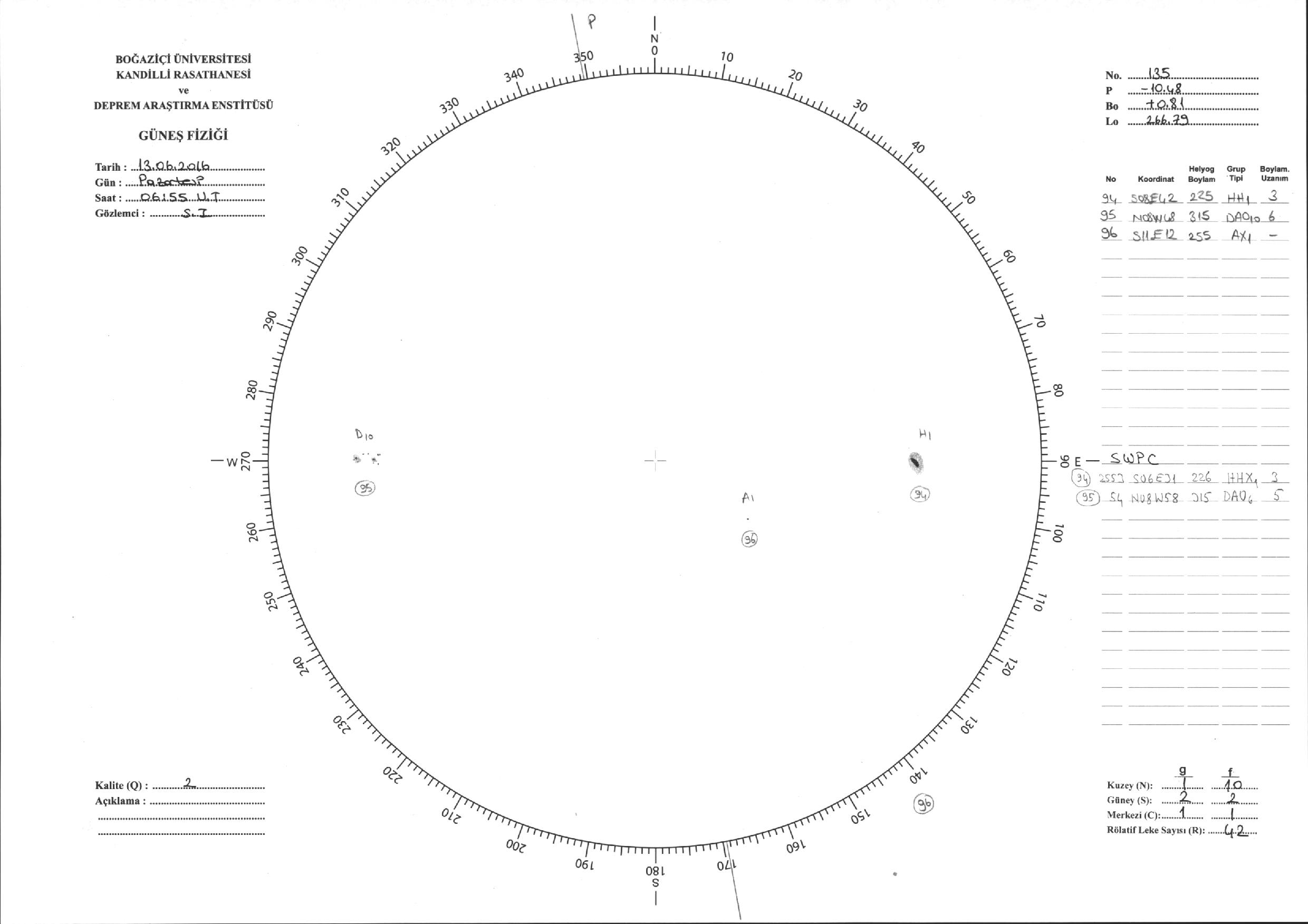 Güneş Lekesi Çizimi - 13.06.2016