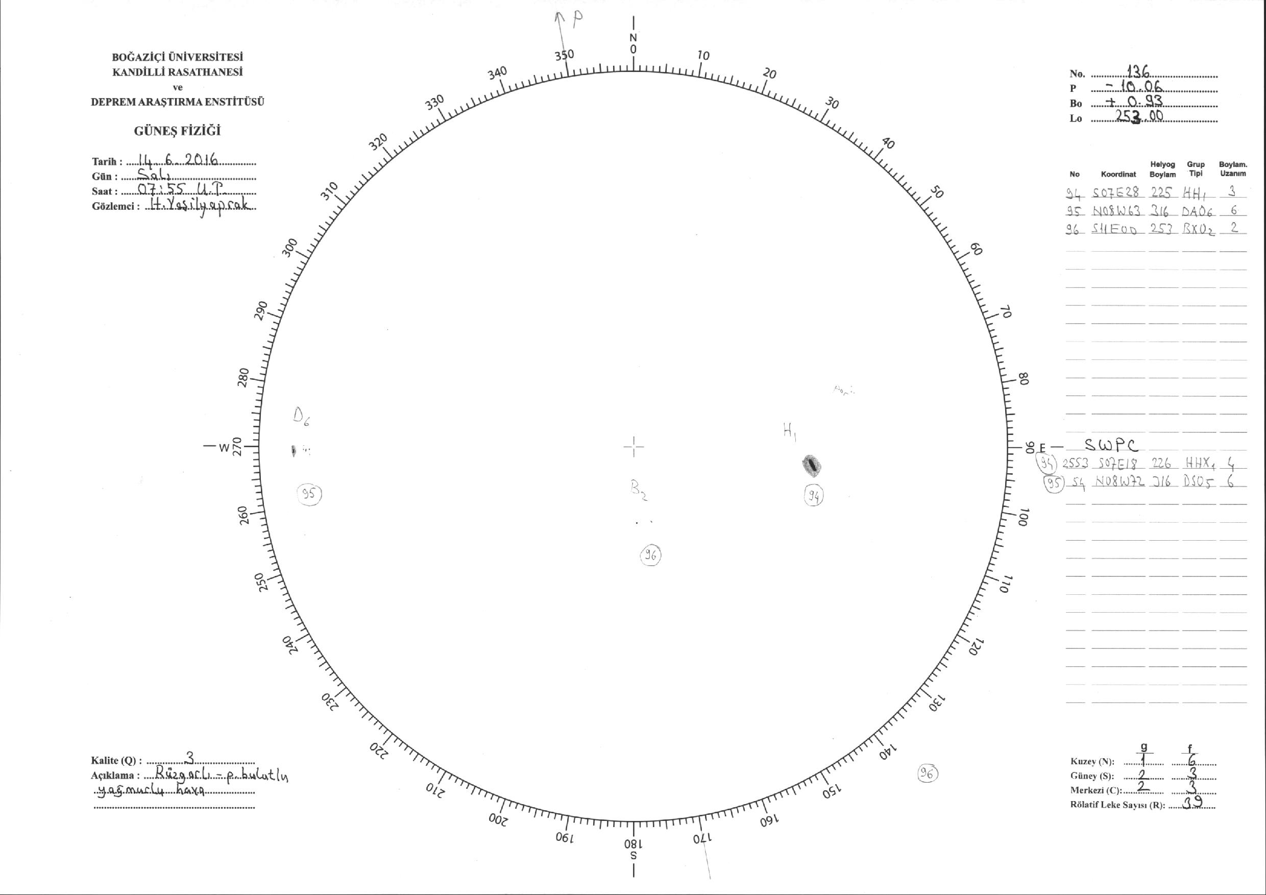 Güneş Lekesi Çizimi - 14.06.2016