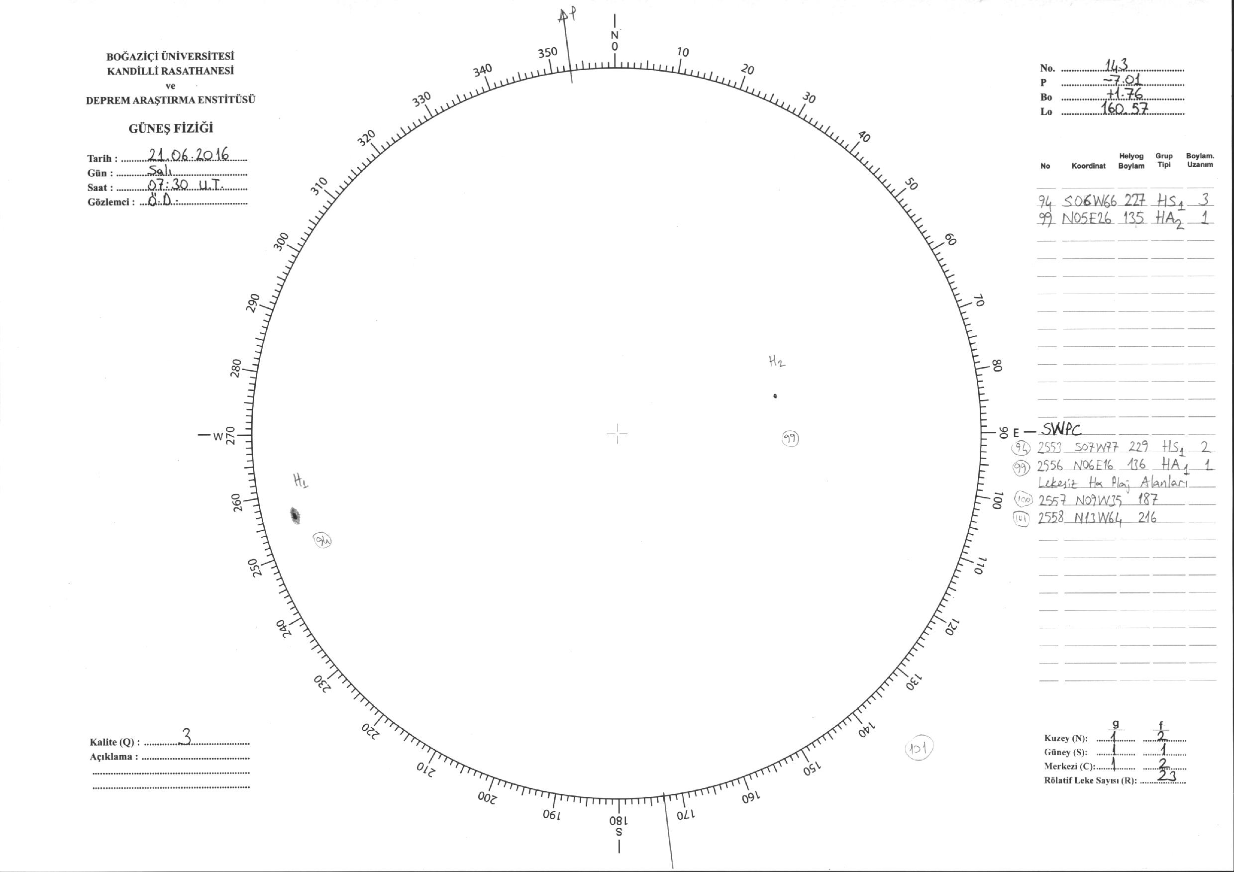 Güneş Lekesi Çizimi - 21.06.2016
