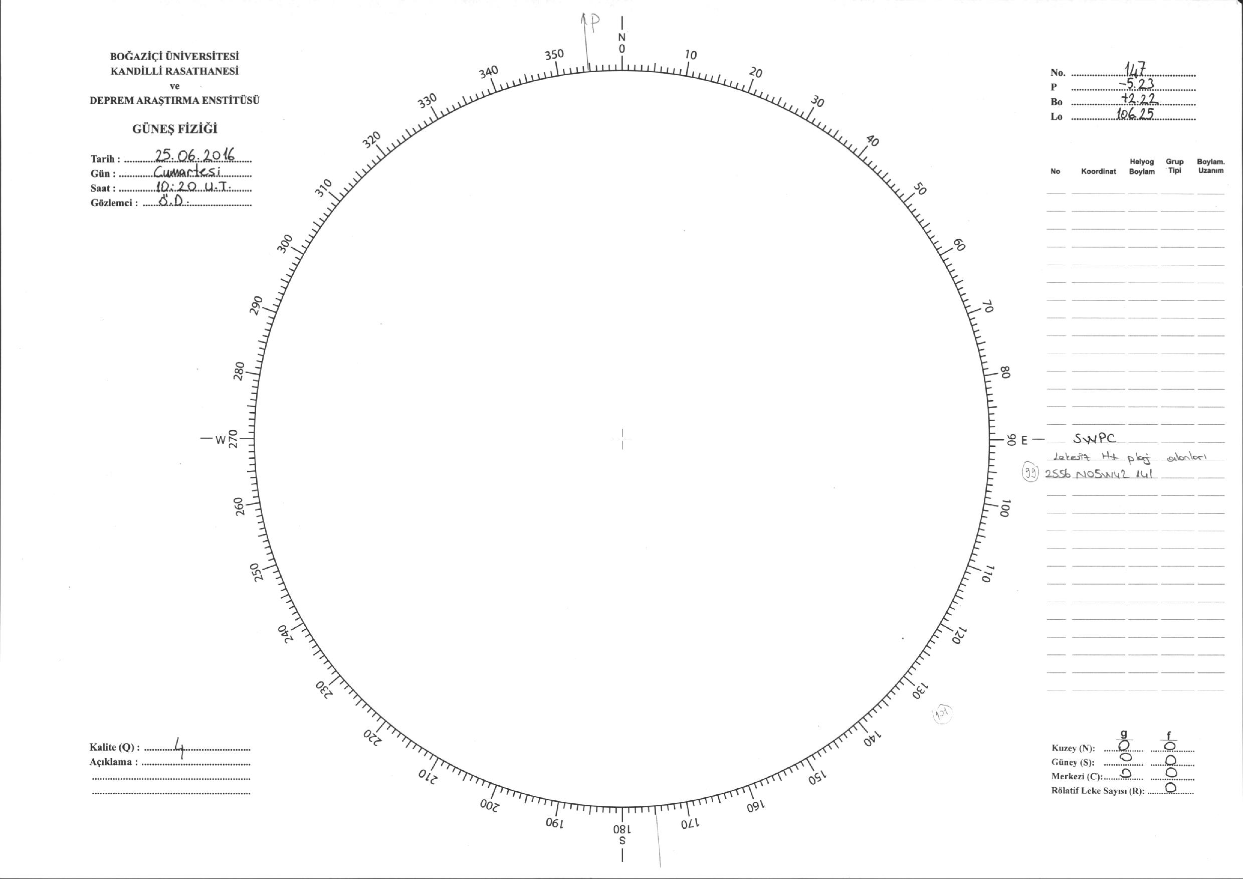 Güneş Lekesi Çizimi - 25.06.2016