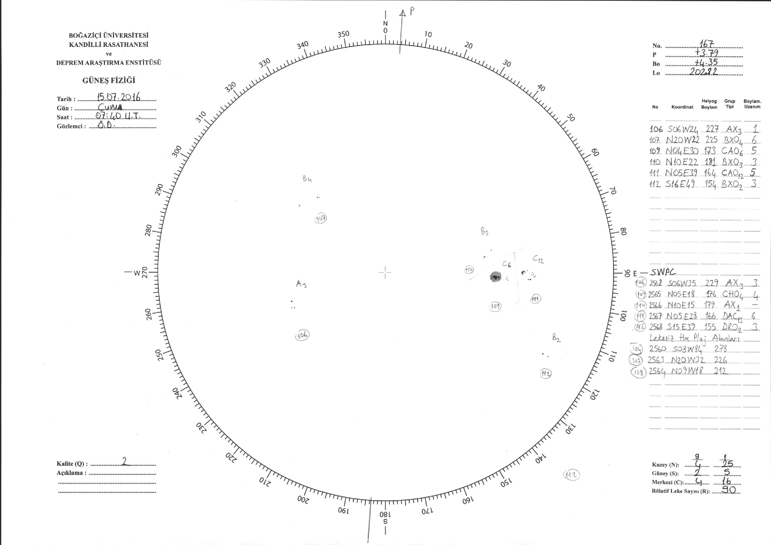 Güneş Lekesi Çizimi - 15.07.2016