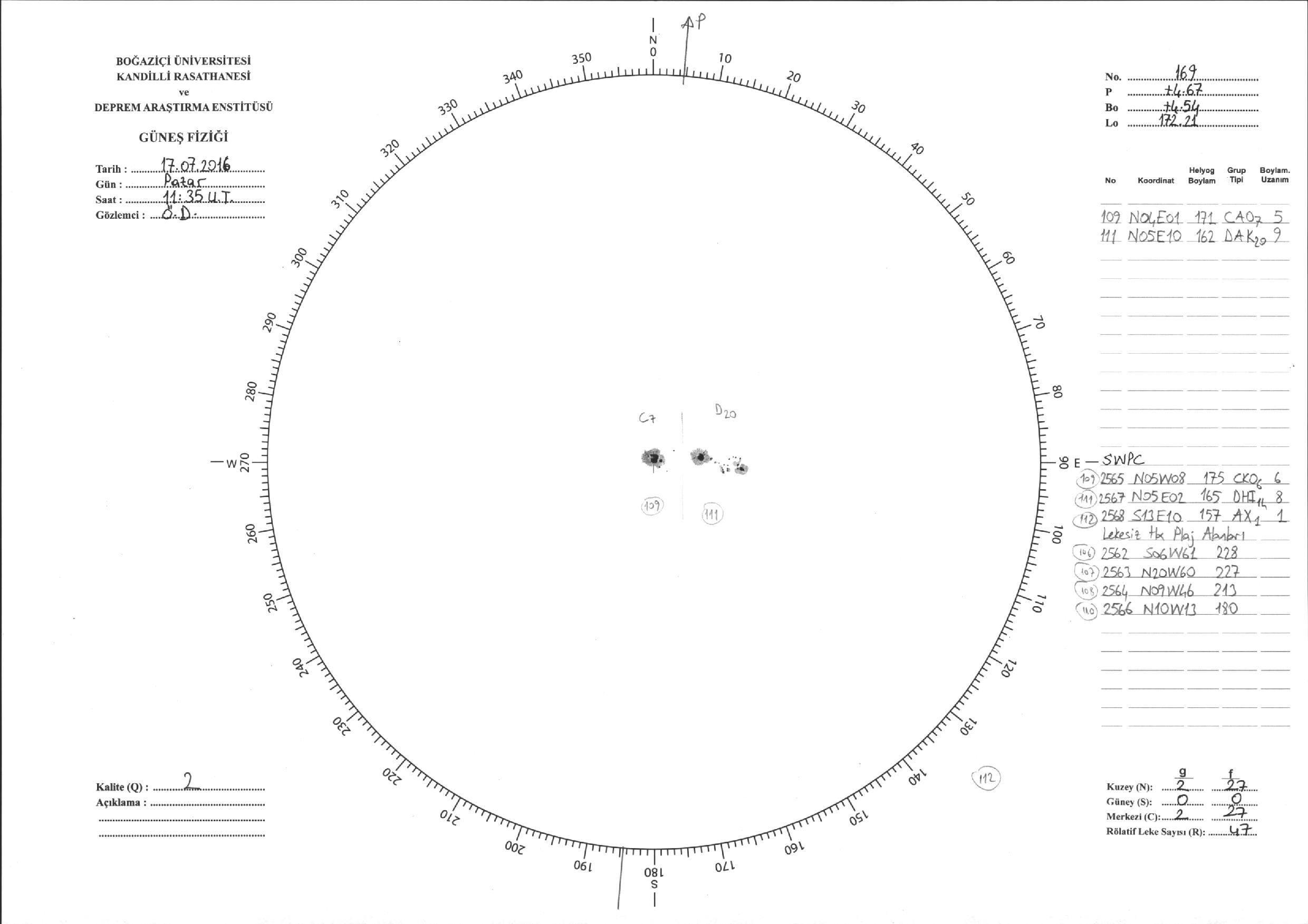 Güneş Lekesi Çizimi - 17.07.2016