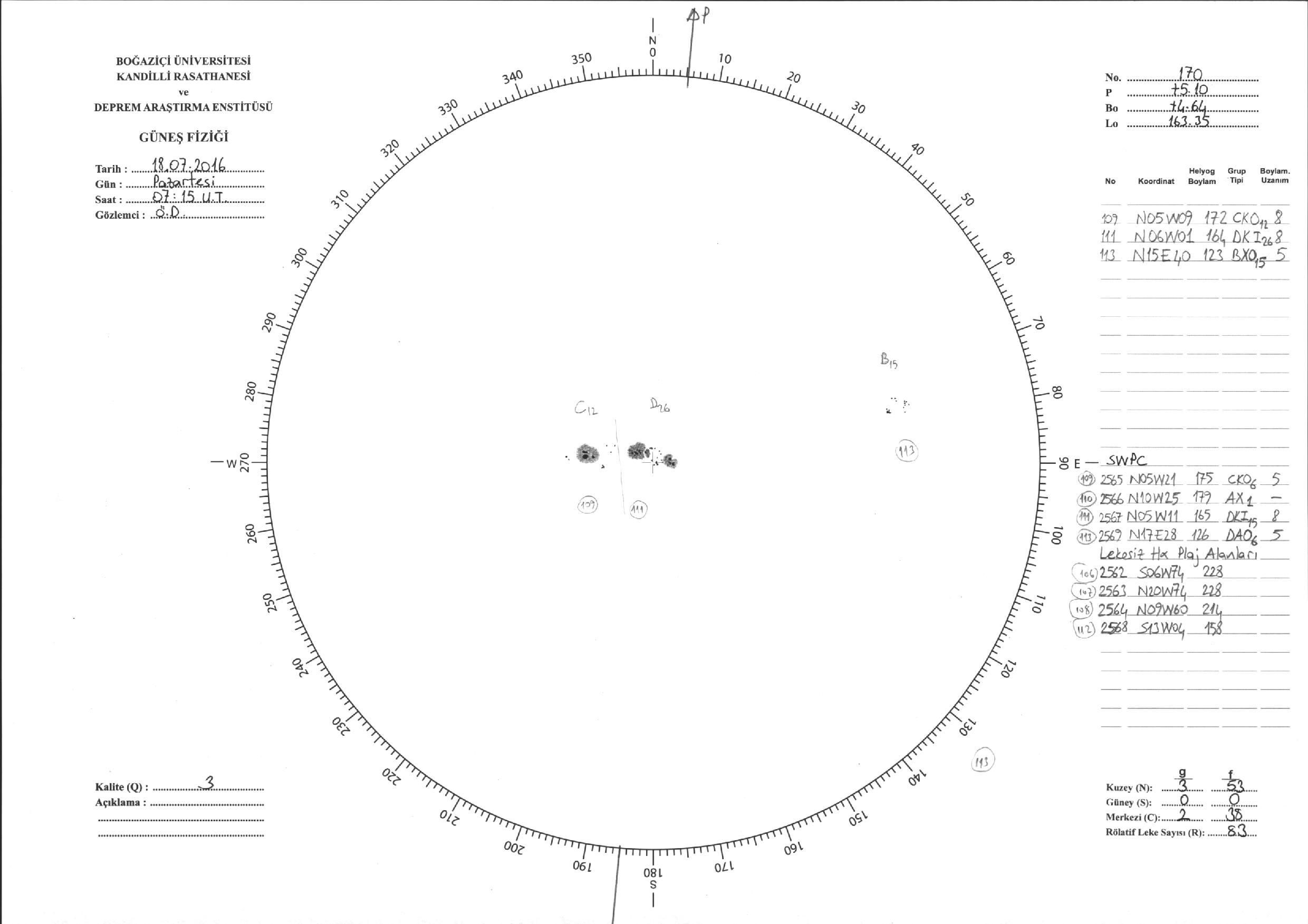 Güneş Lekesi Çizimi - 18.07.2016