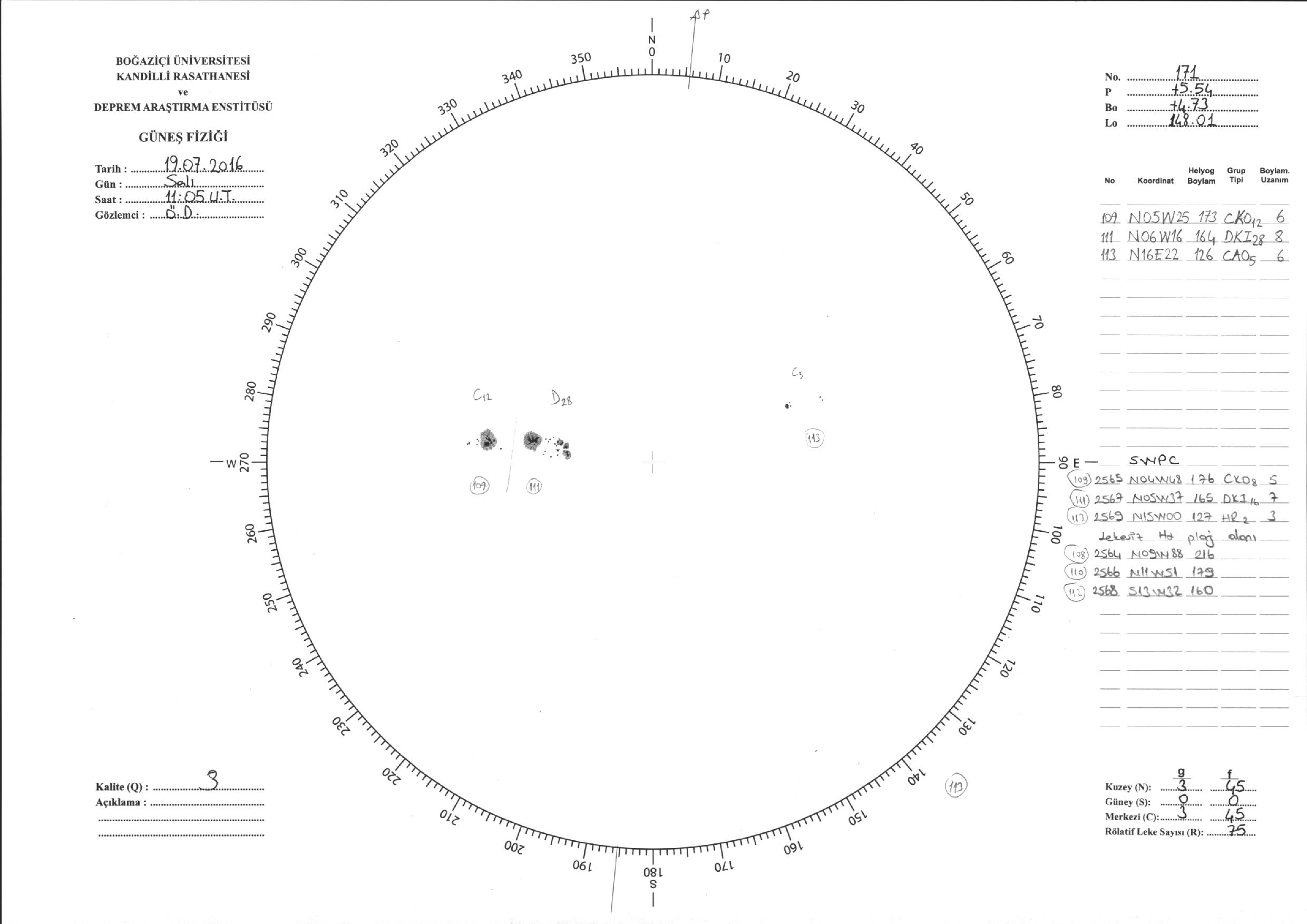 Güneş Lekesi Çizimi - 19.07.2016