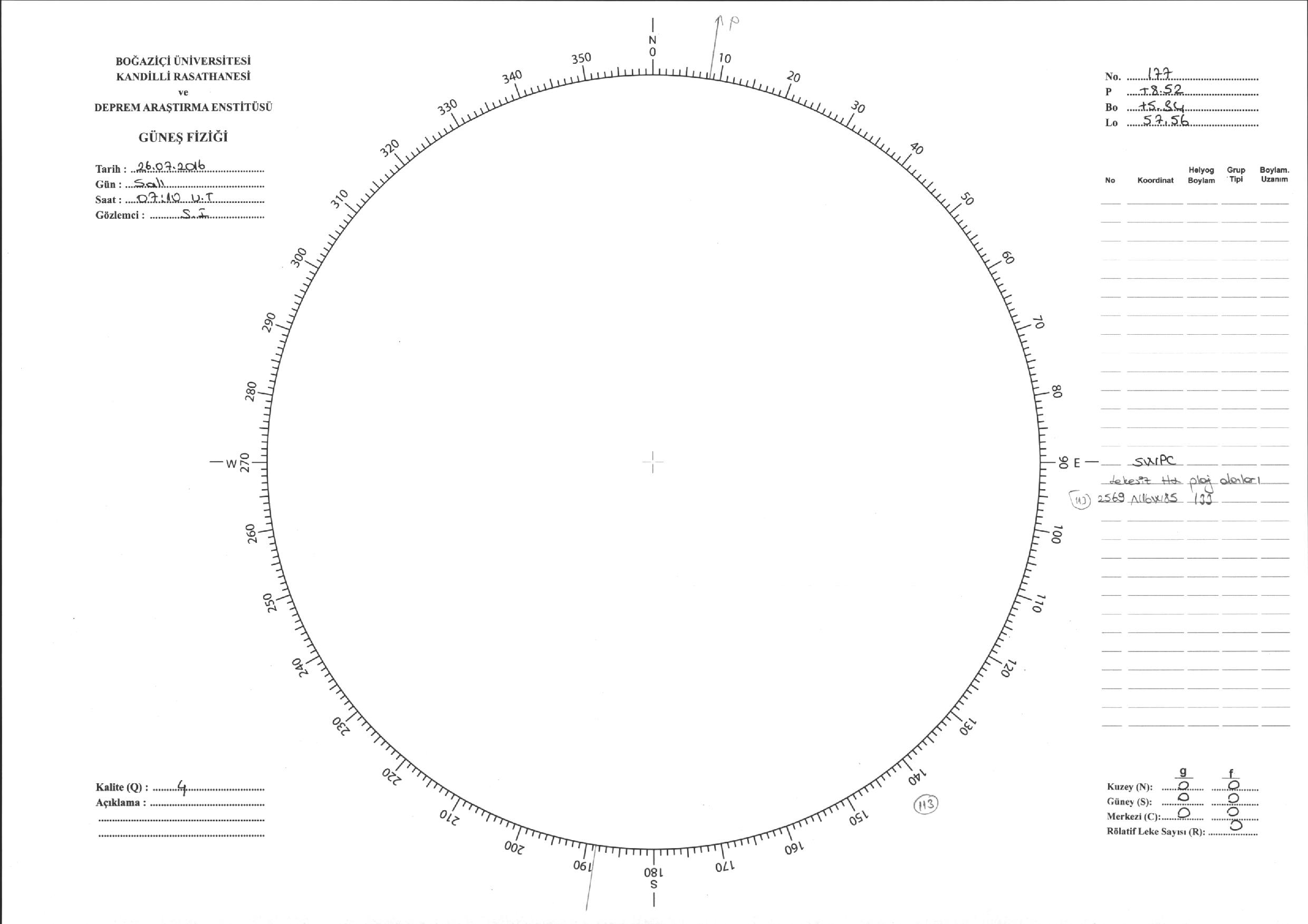 Güneş Lekesi Çizimi - 26.07.2016