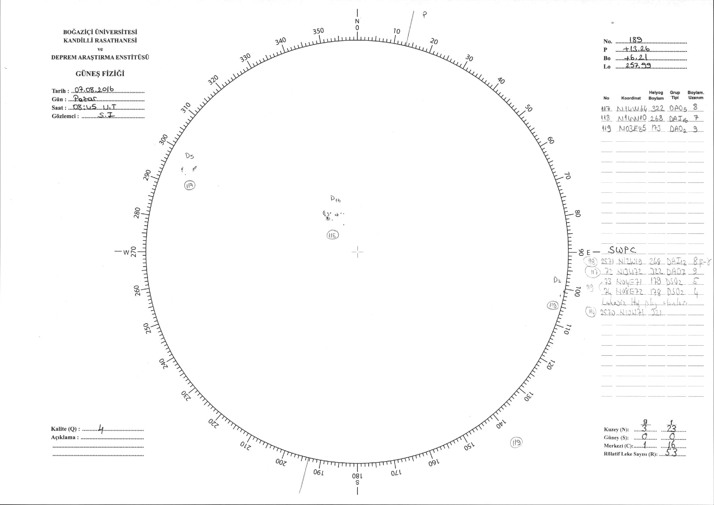 Güneş Lekesi Çizimi - 07.08.2016