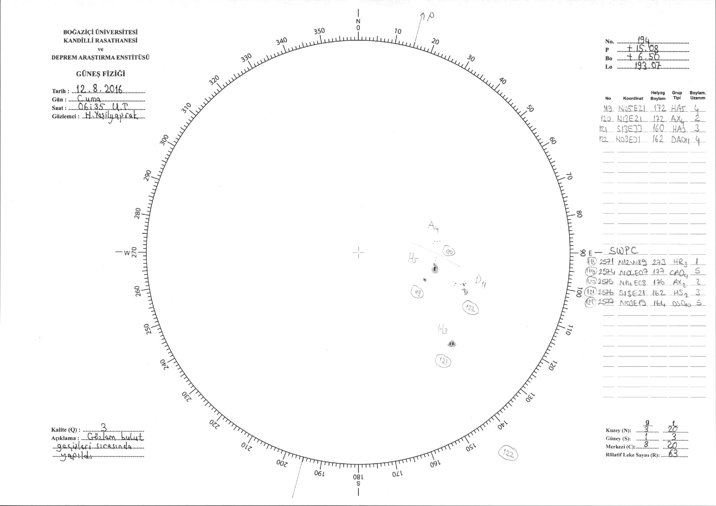 Güneş Lekesi Çizimi - 12.08.2016