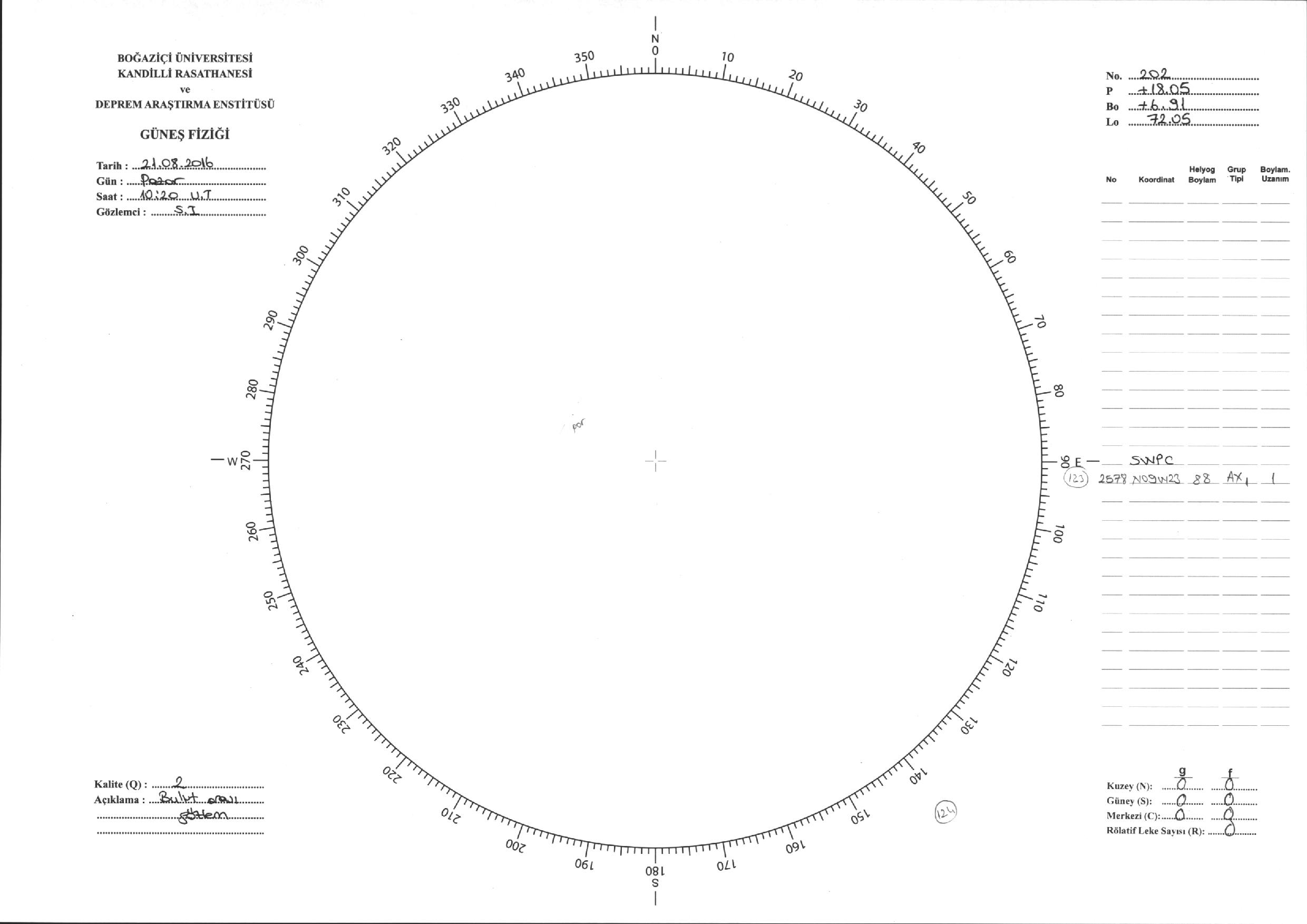 Güneş Lekesi Çizimi - 21.08.2016