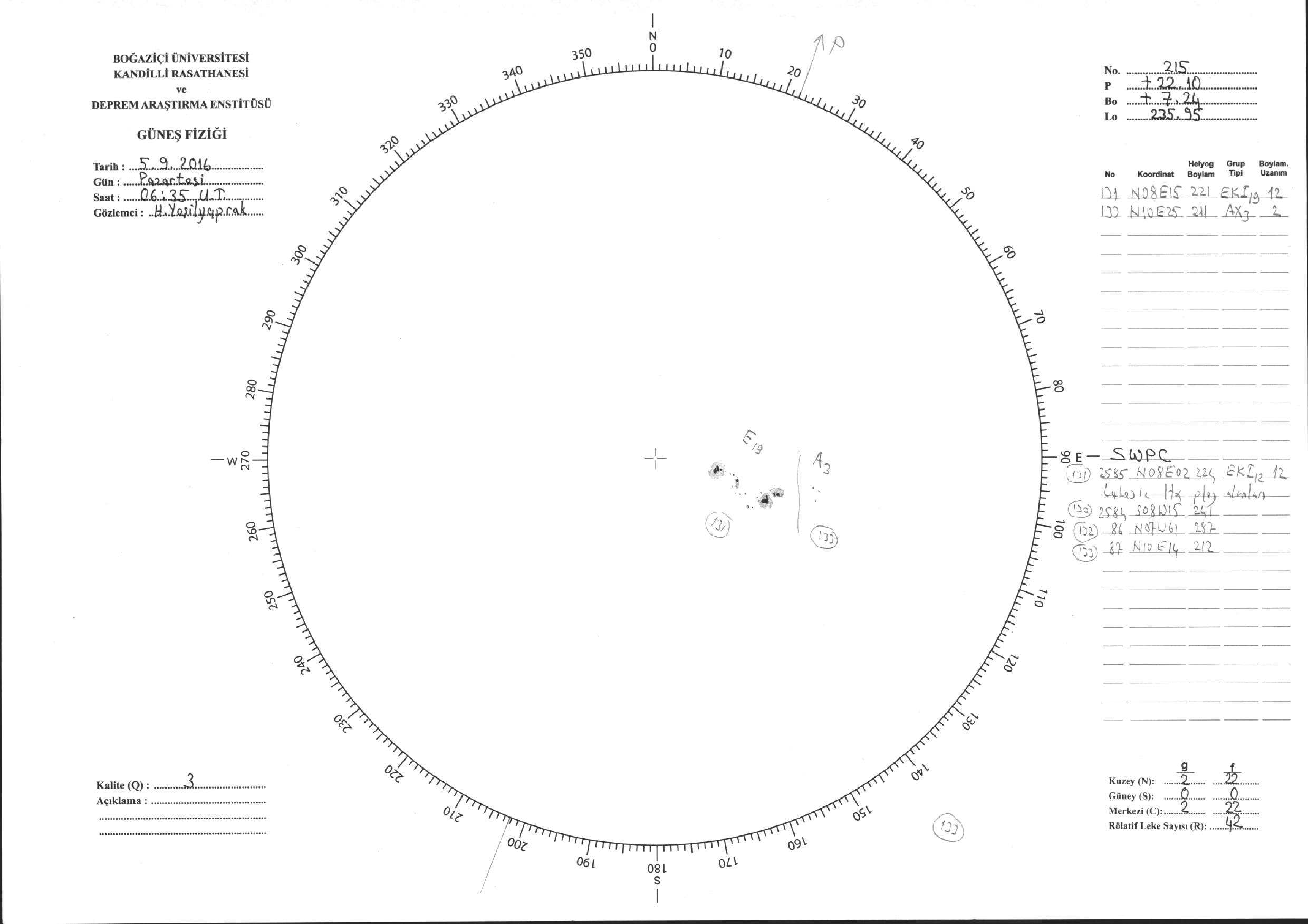 Güneş Lekesi Çizimi - 05.09.2016