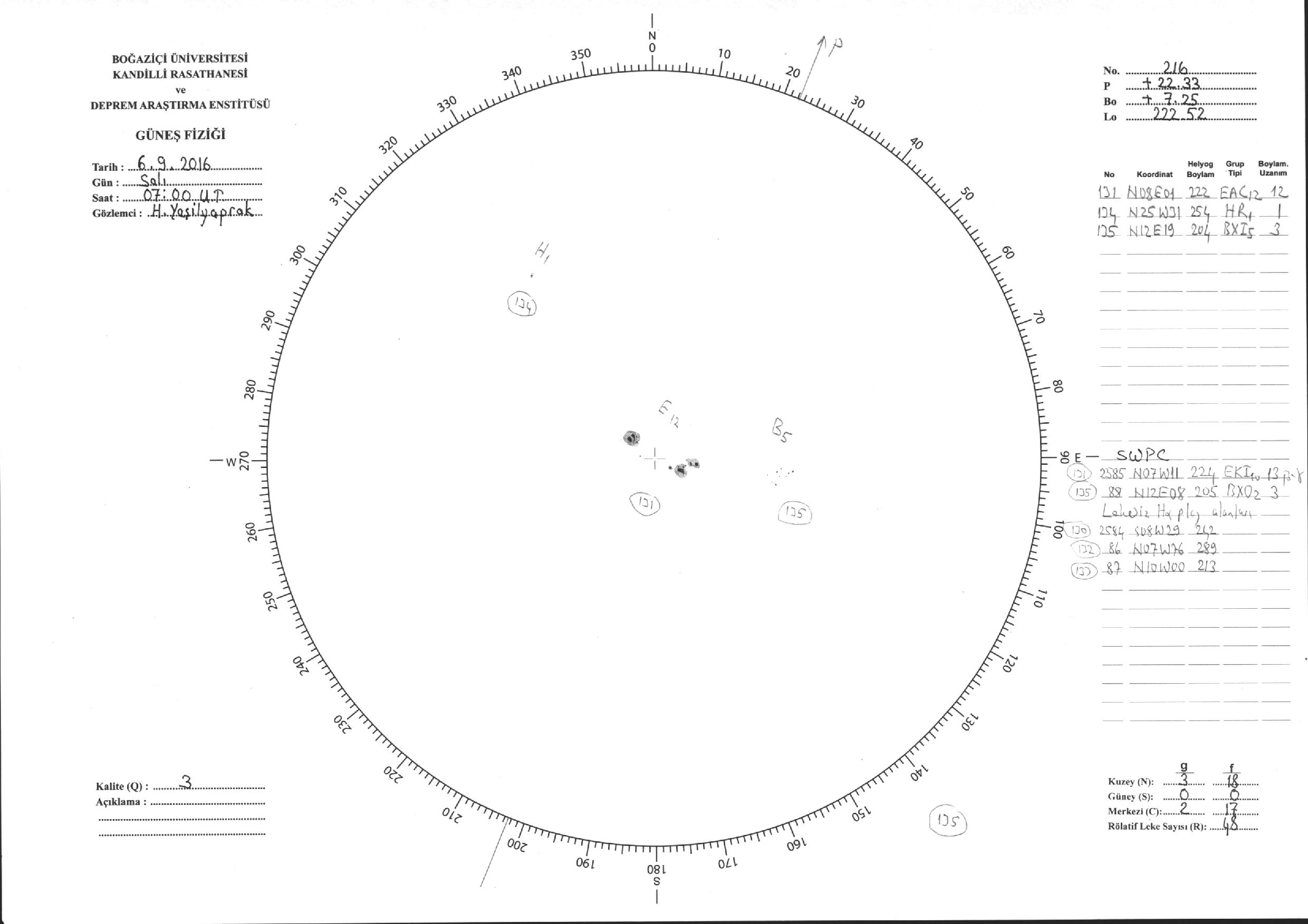 Güneş Lekesi Çizimi - 06.09.2016