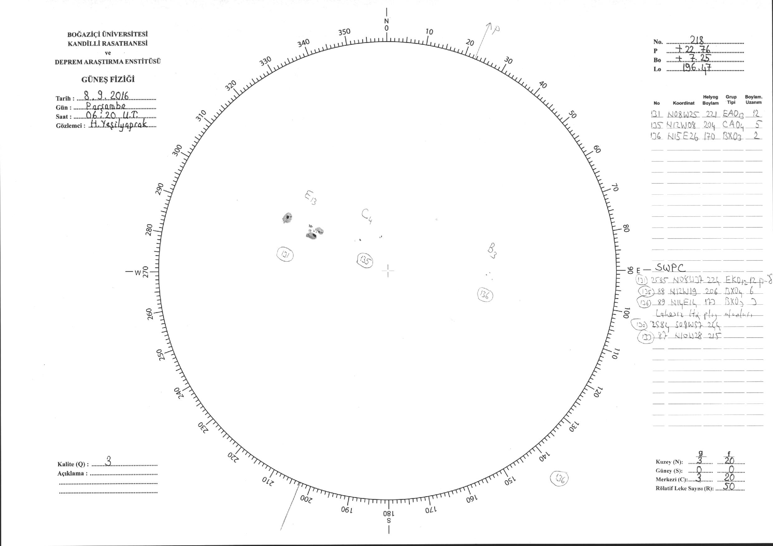 Güneş Lekesi Çizimi - 08.09.2016
