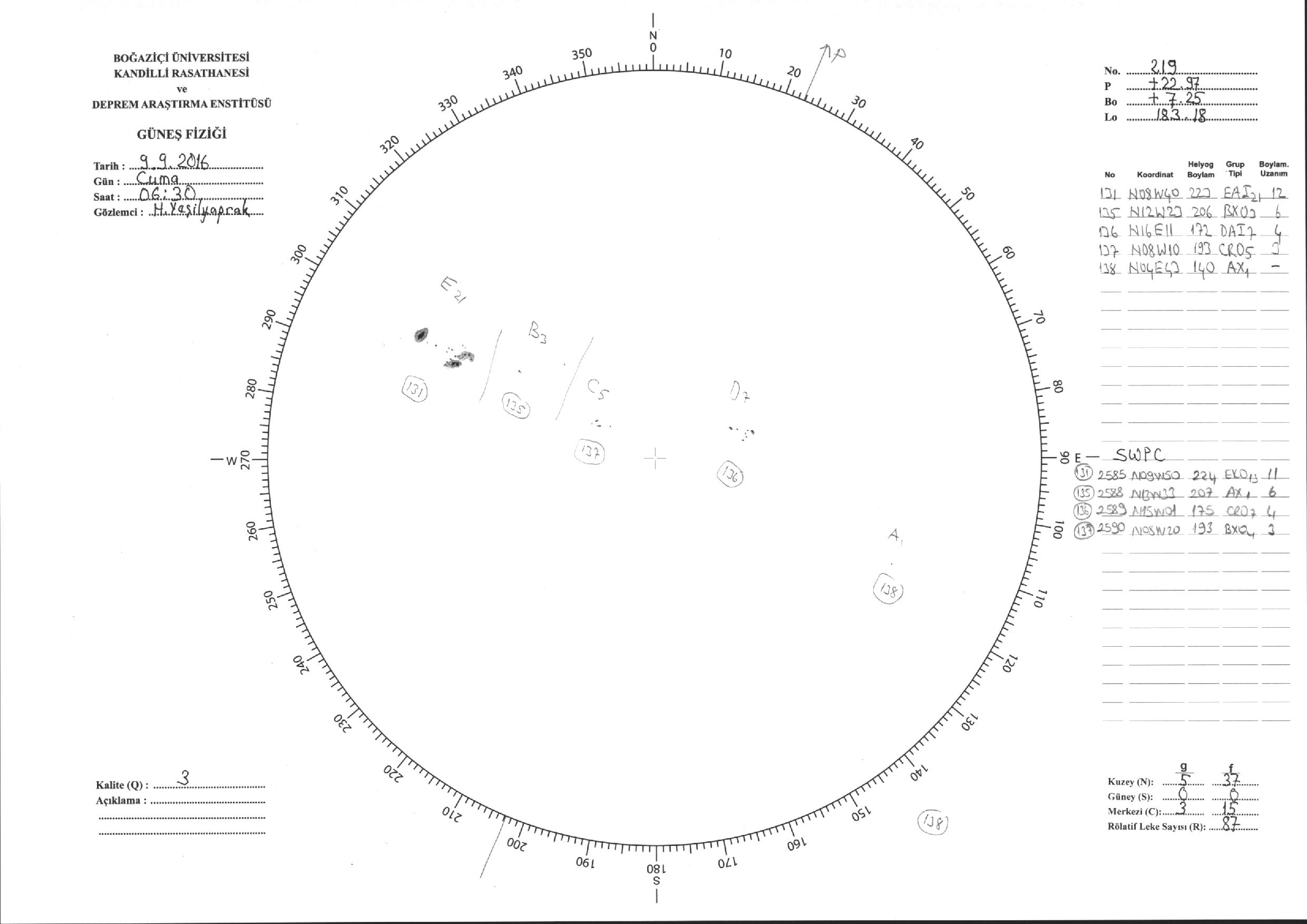 Güneş Lekesi Çizimi - 09.09.2016