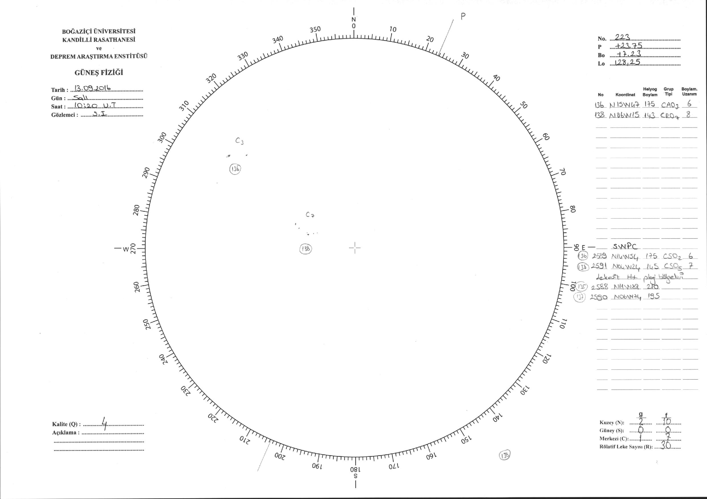 Güneş Lekesi Çizimi - 13.09.2016