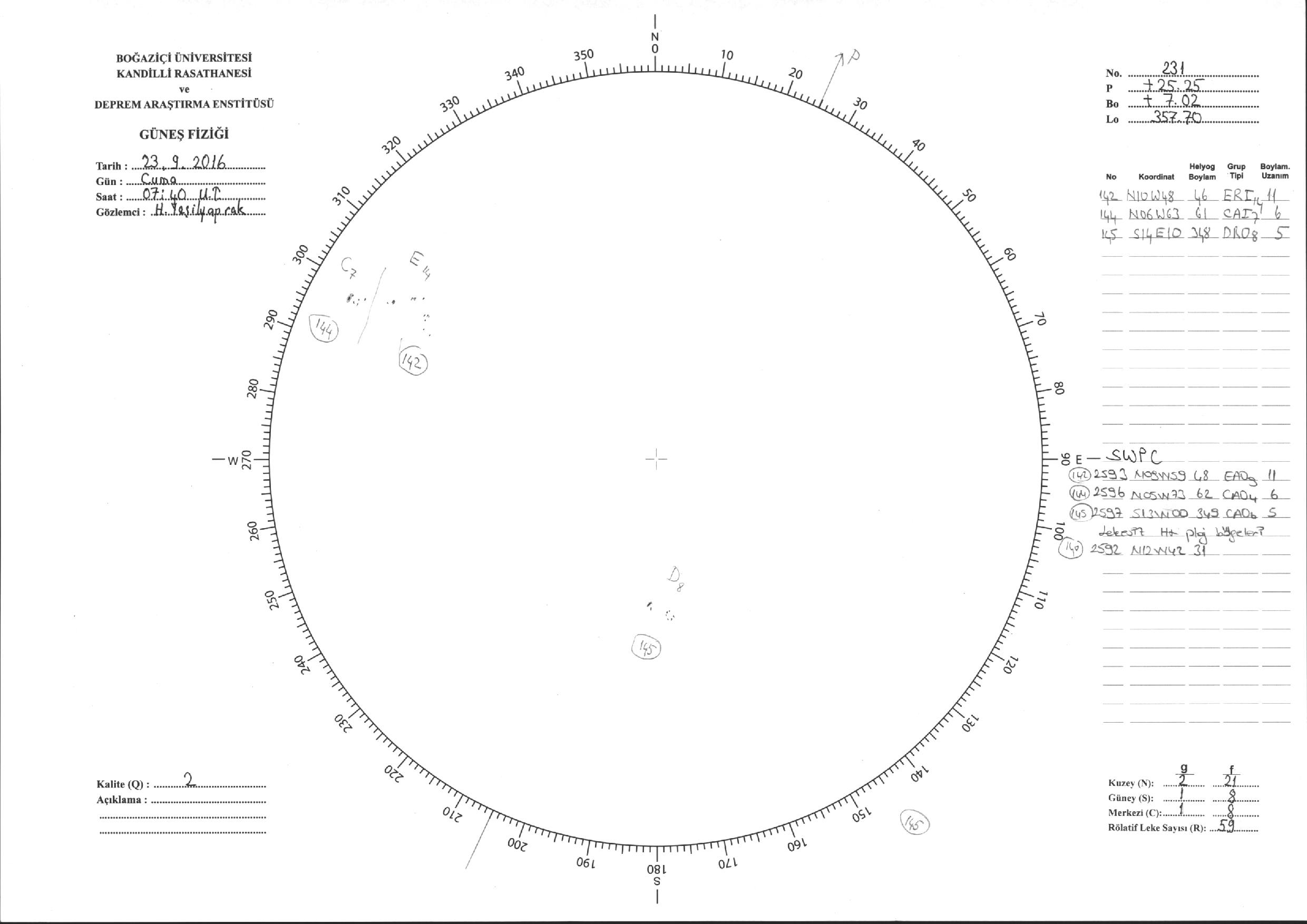 Güneş Lekesi Çizimi - 23.09.2016