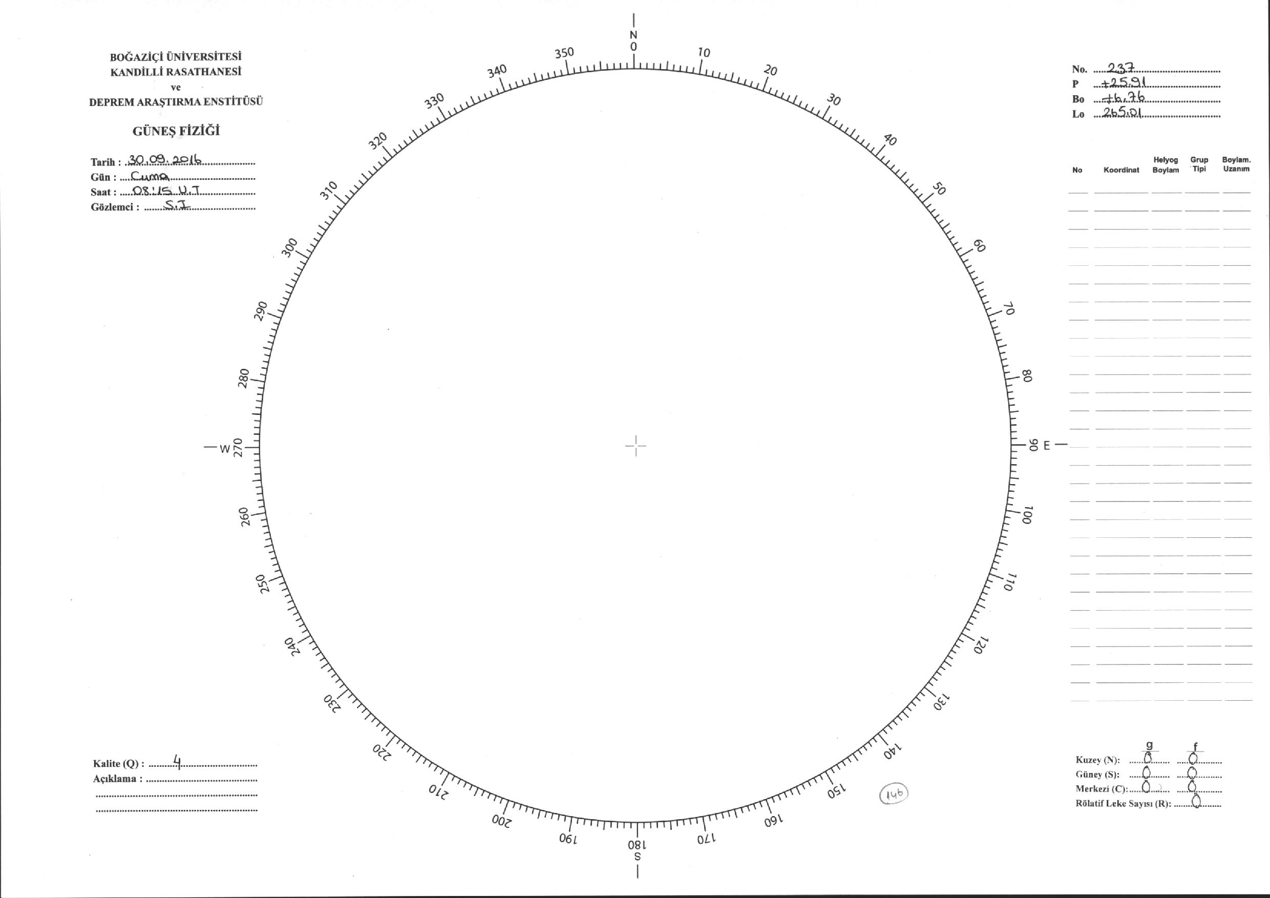 Güneş Lekesi Çizimi - 30.09.2016