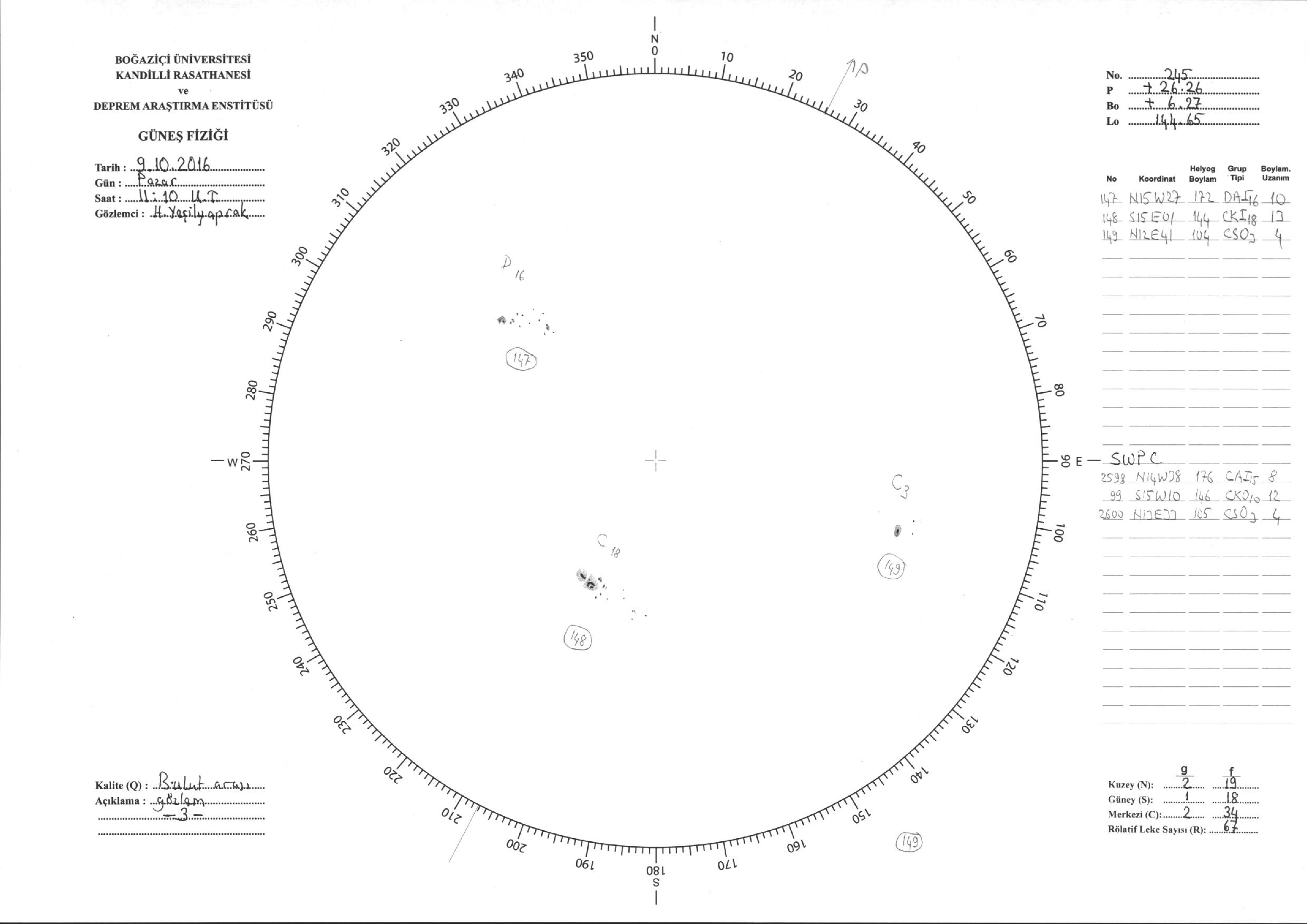 Güneş Lekesi Çizimi - 09.10.2016