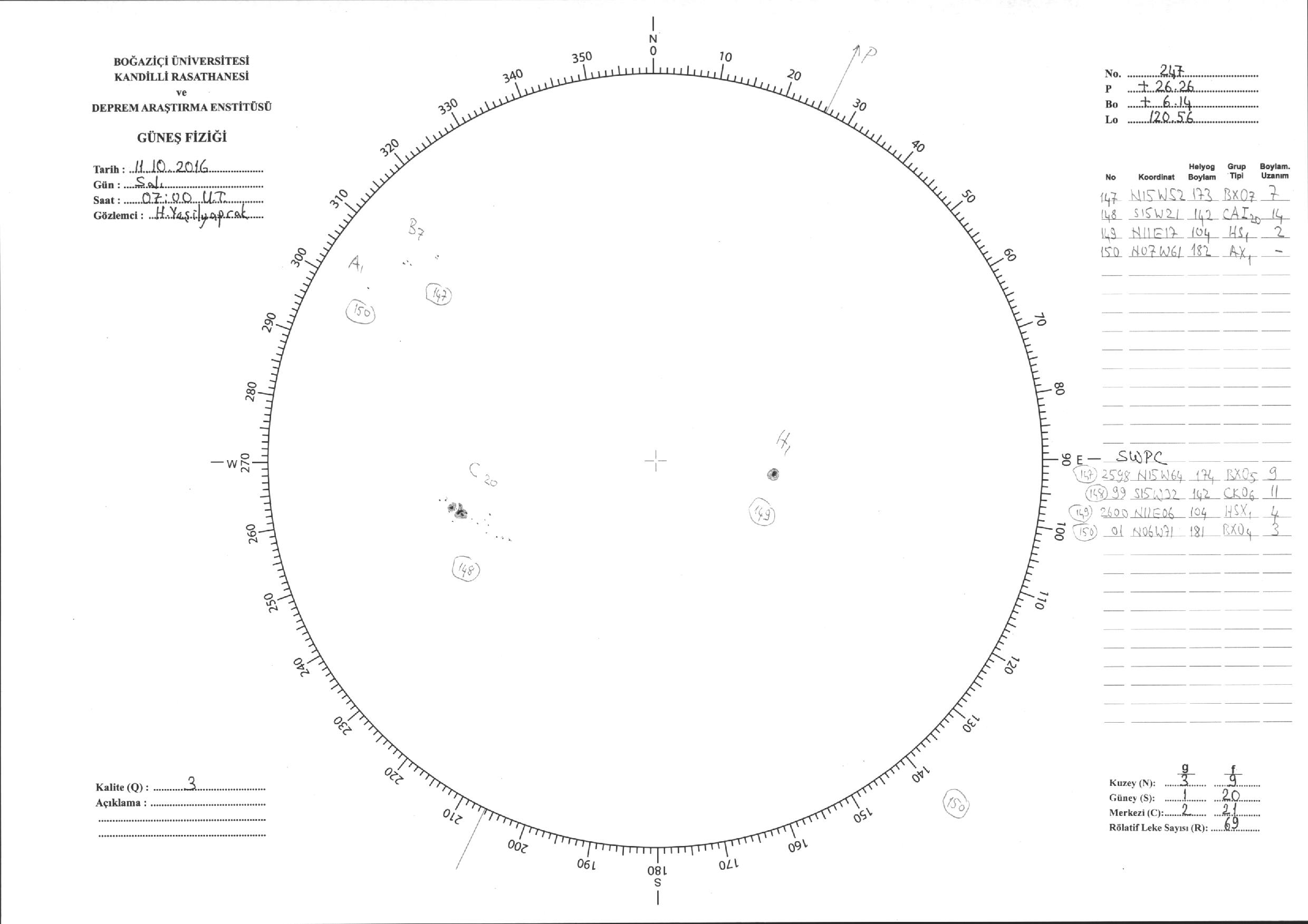 Güneş Lekesi Çizimi - 11.10.2016