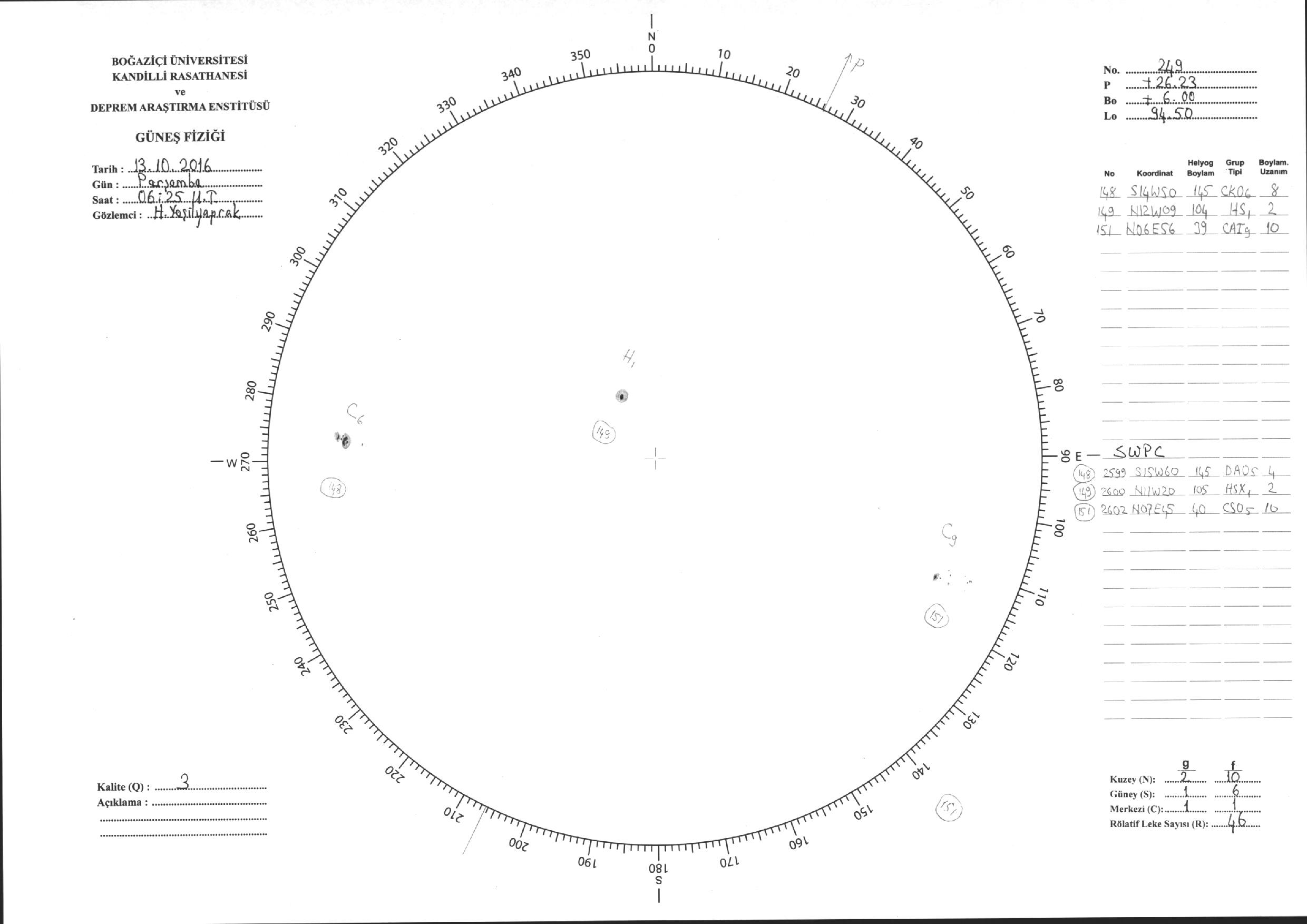 Güneş Lekesi Çizimi - 13.10.2016
