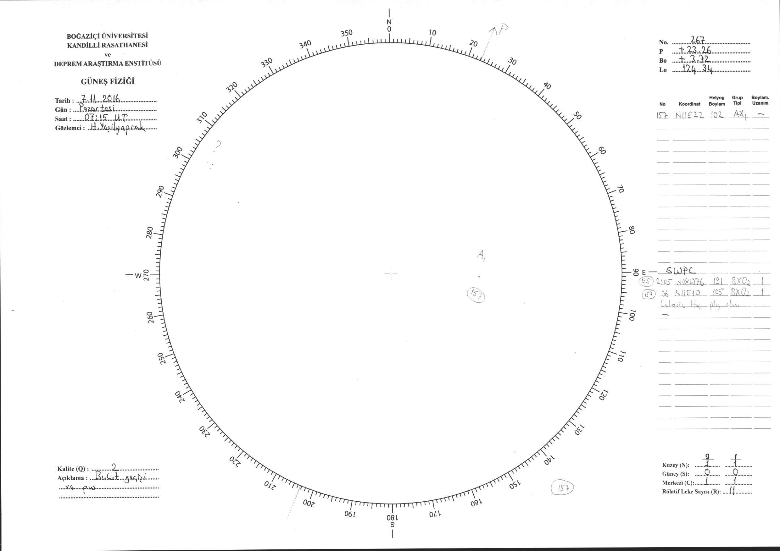 Güneş Lekesi Çizimi - 07.11.2016