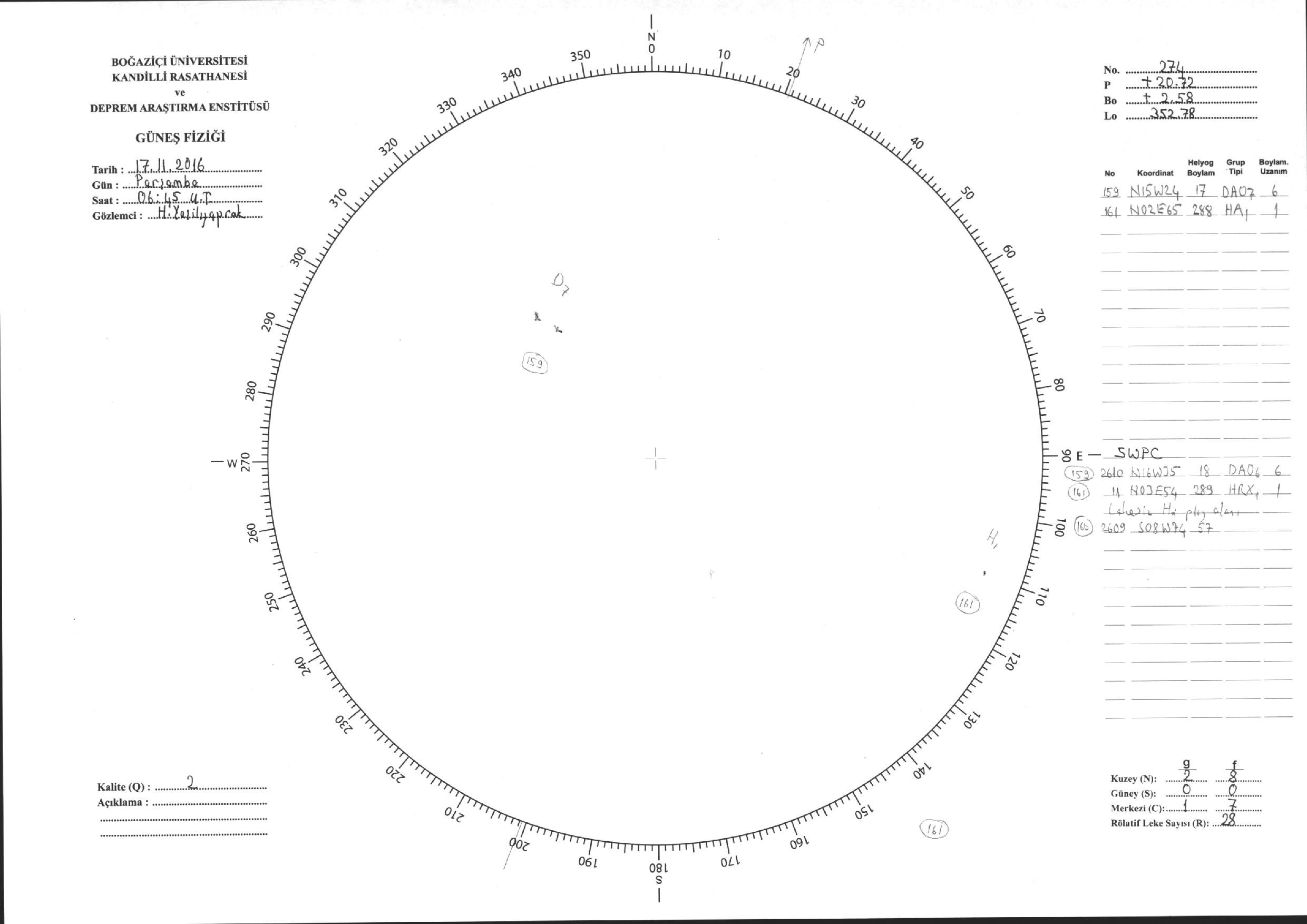 Güneş Lekesi Çizimi - 17.11.2016