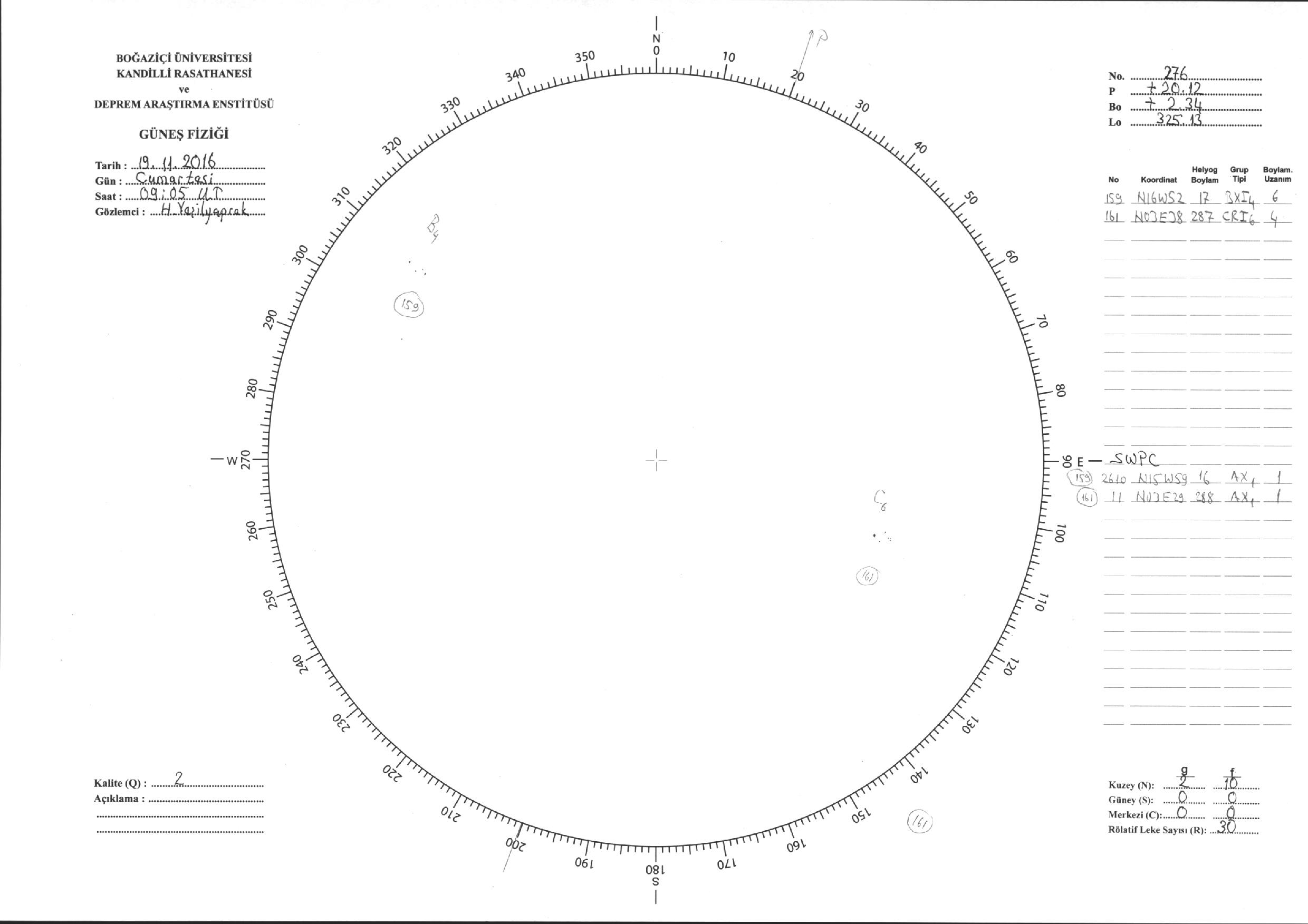 Güneş Lekesi Çizimi - 19.11.2016