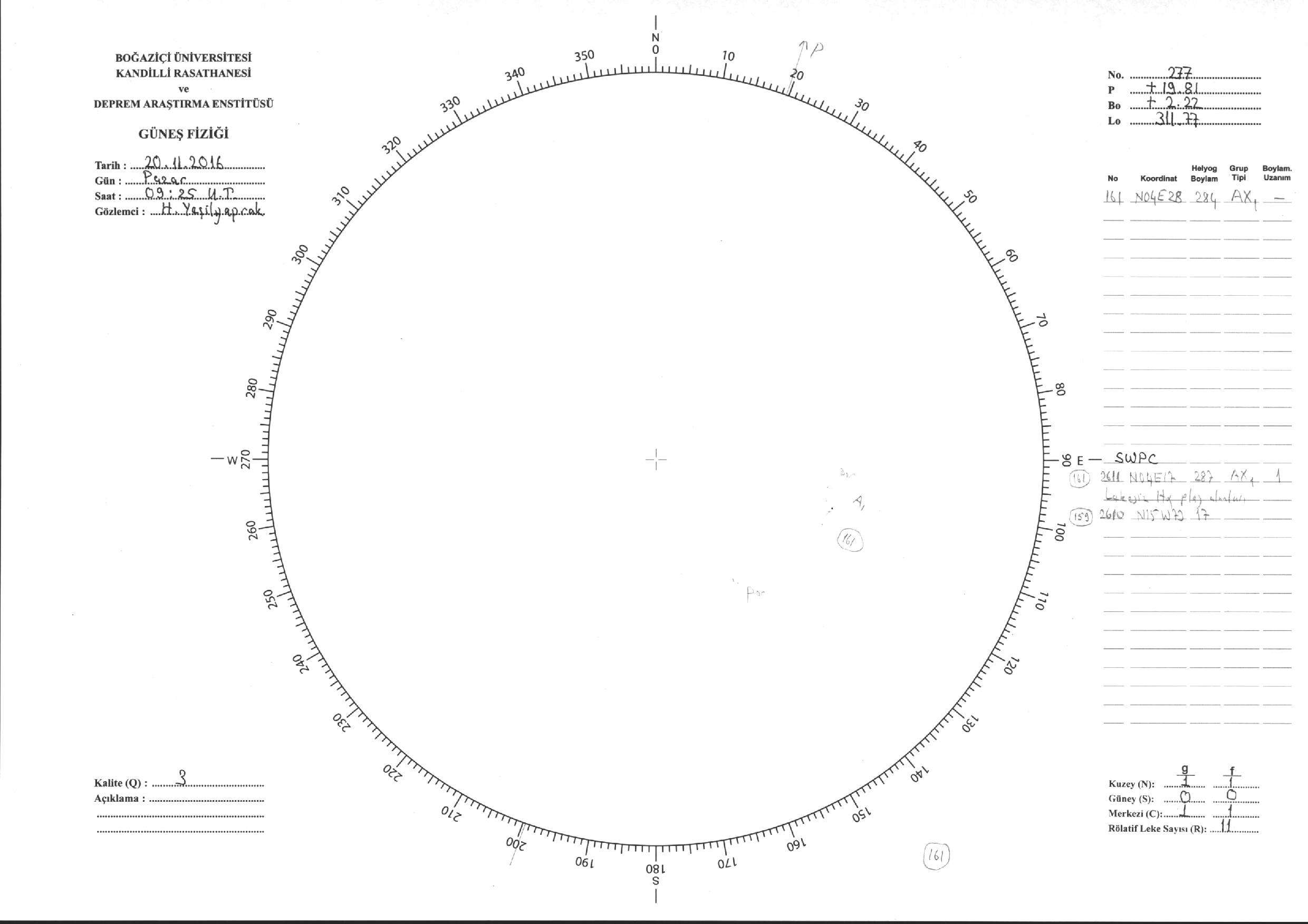 Güneş Lekesi Çizimi - 20.11.2016