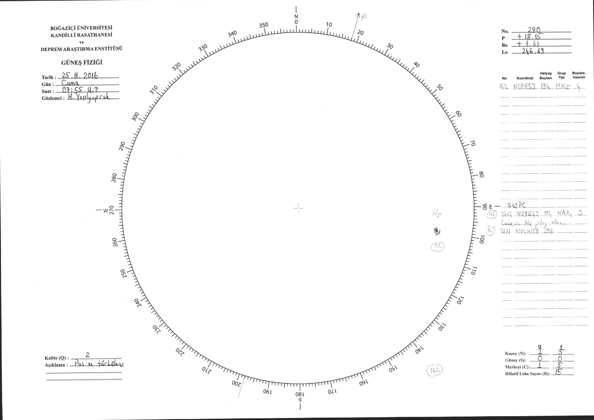 Güneş Lekesi Çizimi - 25.11.2016