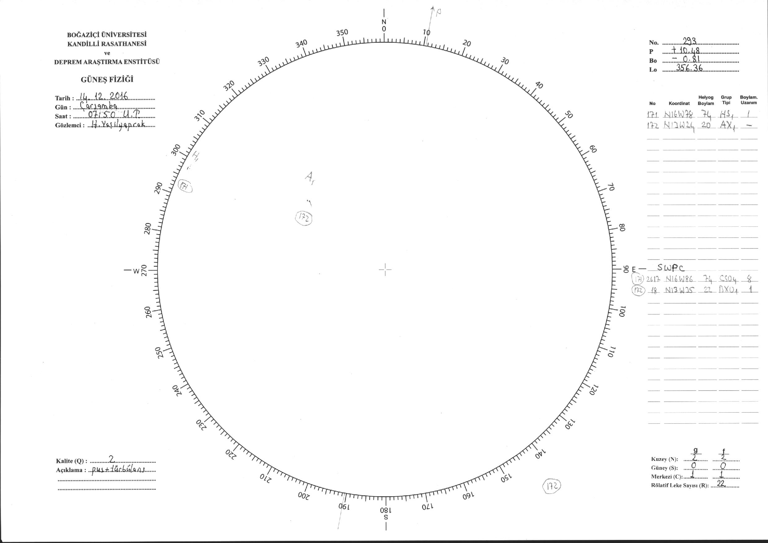 Güneş Lekesi Çizimi - 14.12.2016