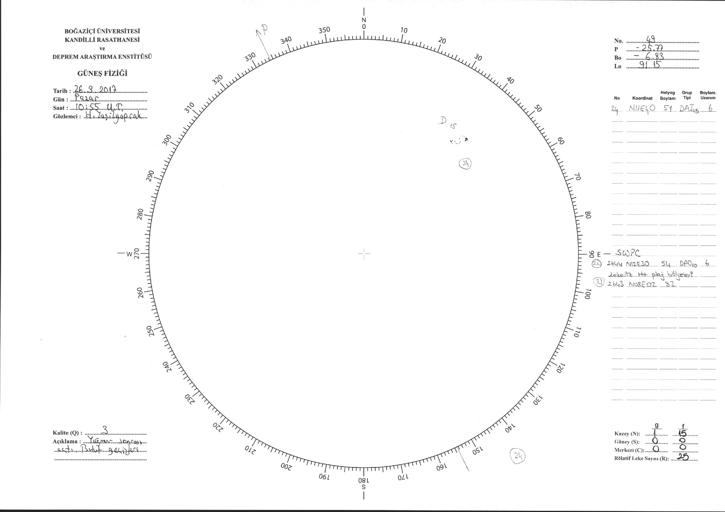 Güneş Lekesi Çizimi - 26.03.2017