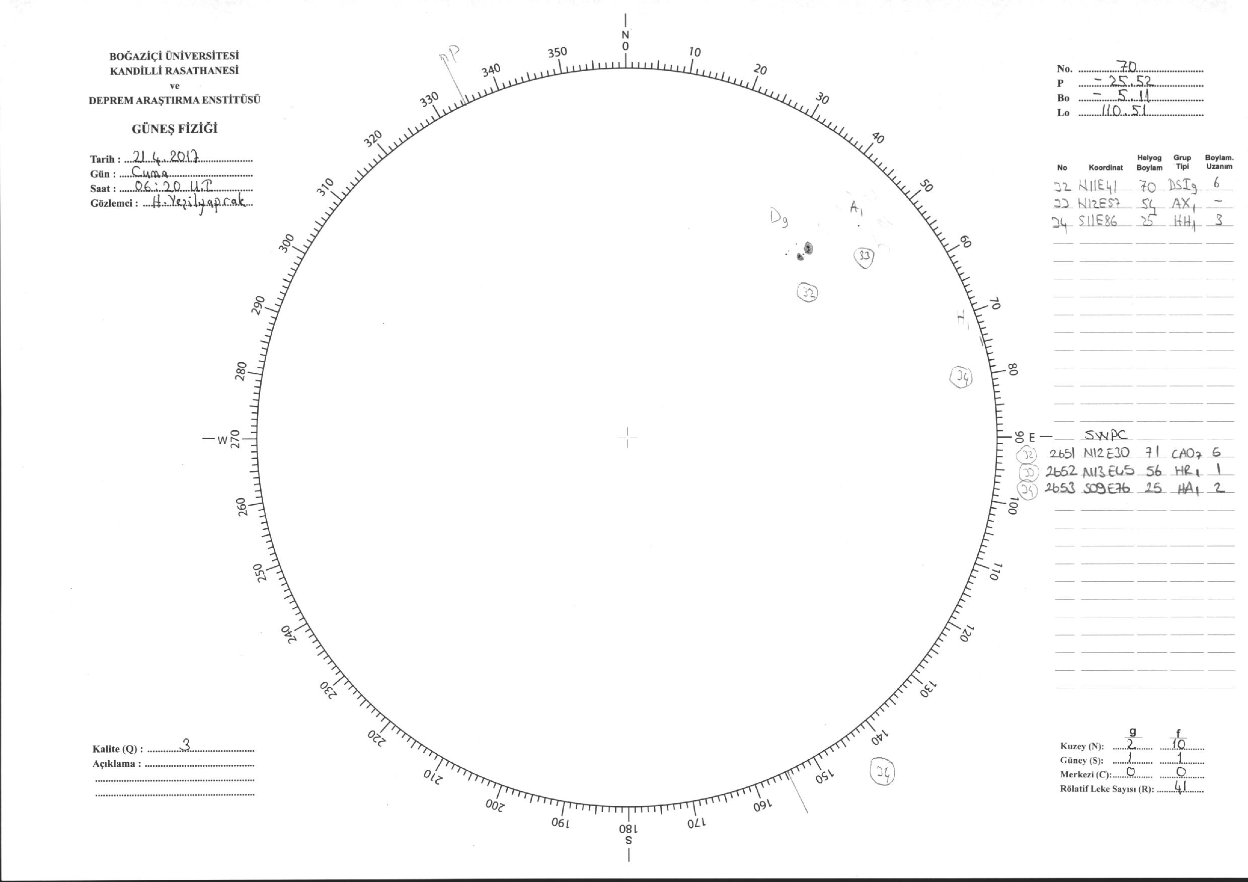 Güneş Lekesi Çizimi - 21.04.2017