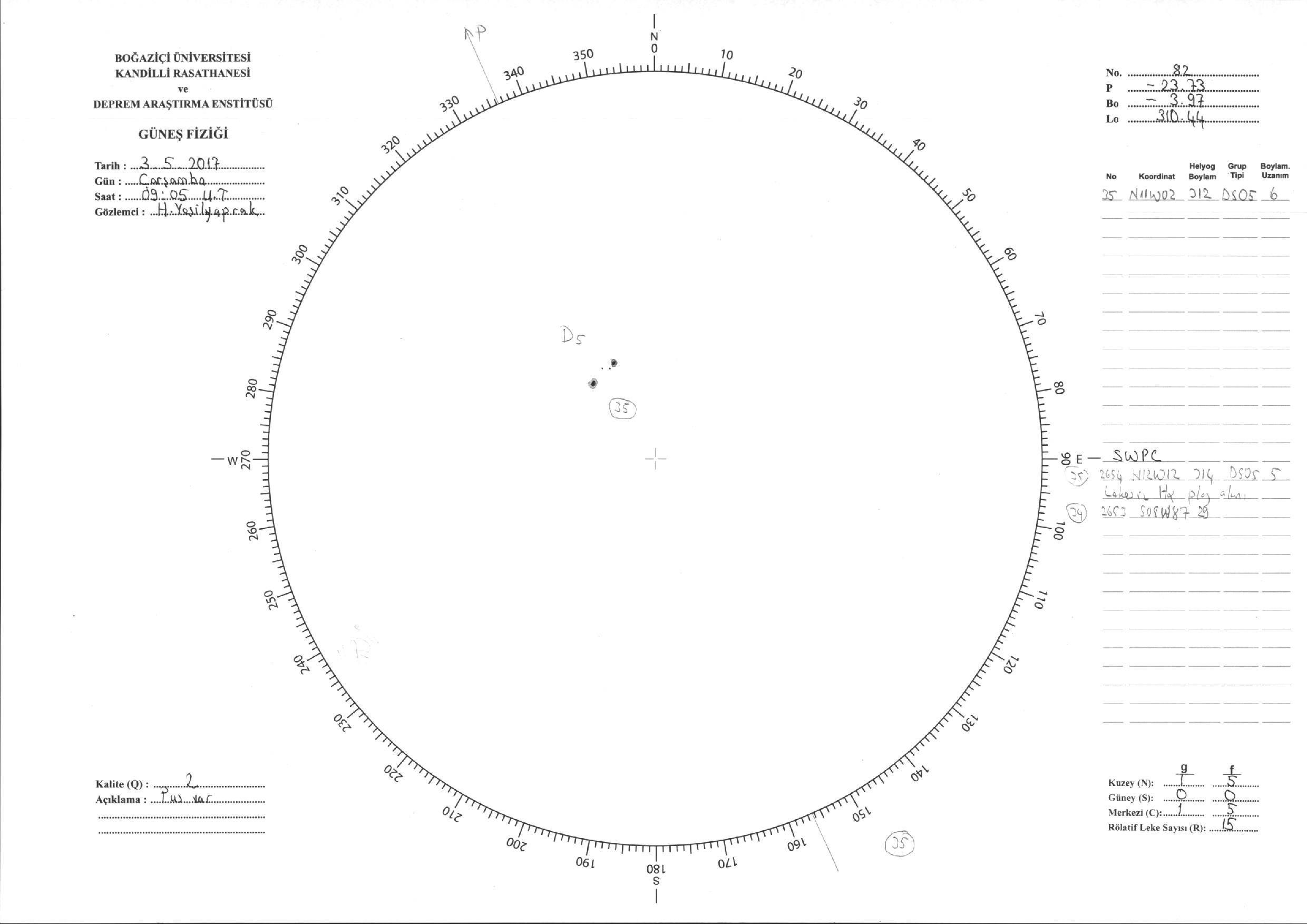 Güneş Lekesi Çizimi - 03.05.2017