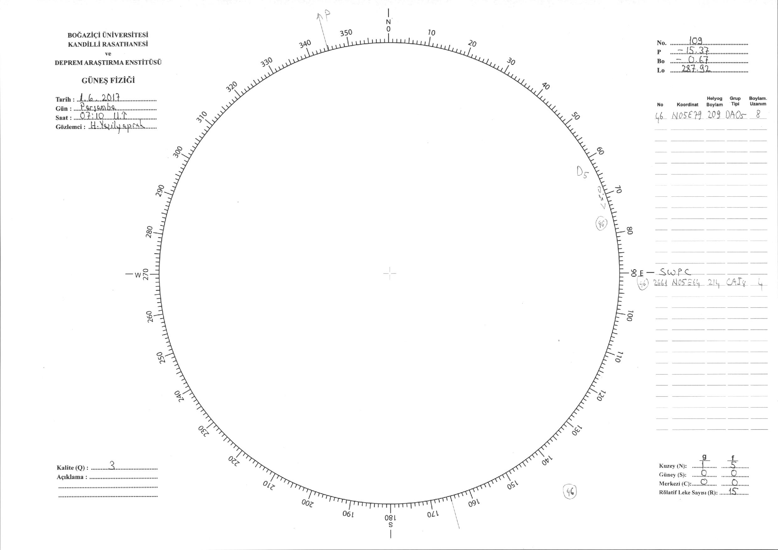 Güneş Lekesi Çizimi - 01.06.2017