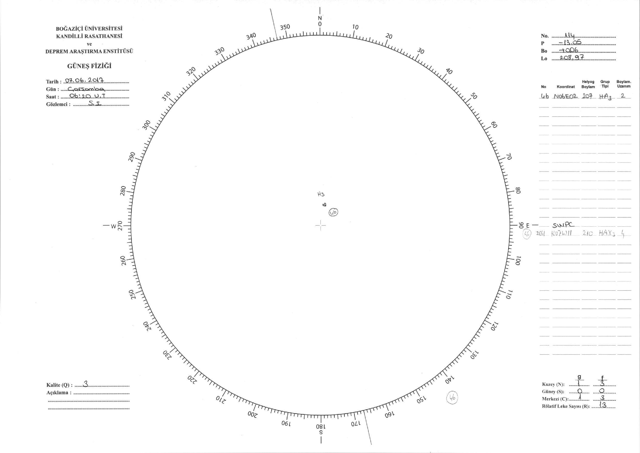 Güneş Lekesi Çizimi - 07.06.2017