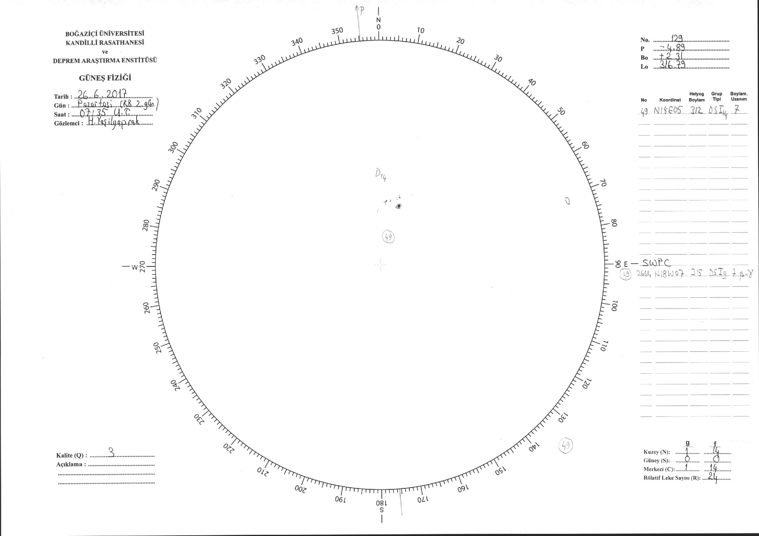 Güneş Lekesi Çizimi - 26.06.2017