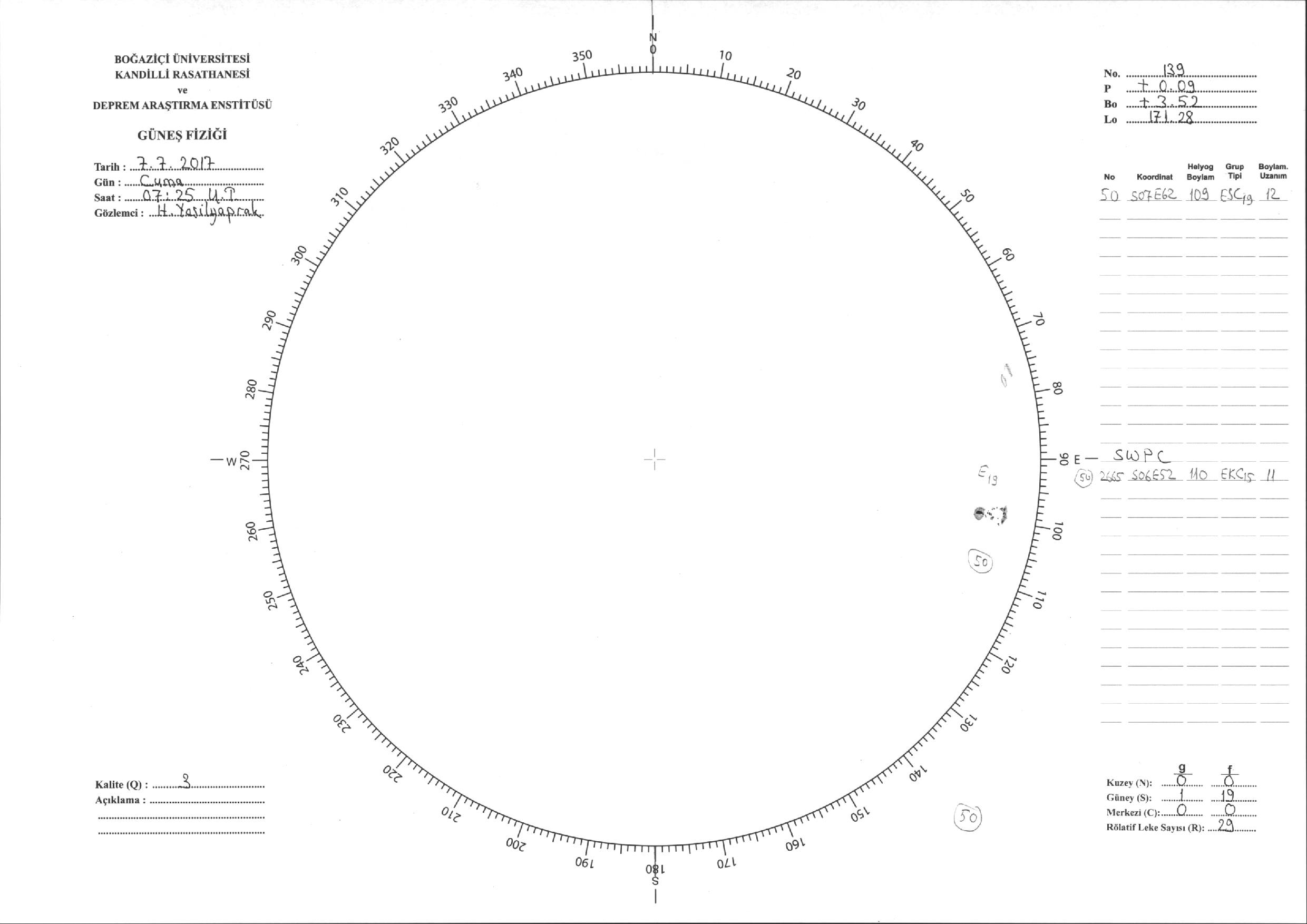 Güneş Lekesi Çizimi - 07.07.2017