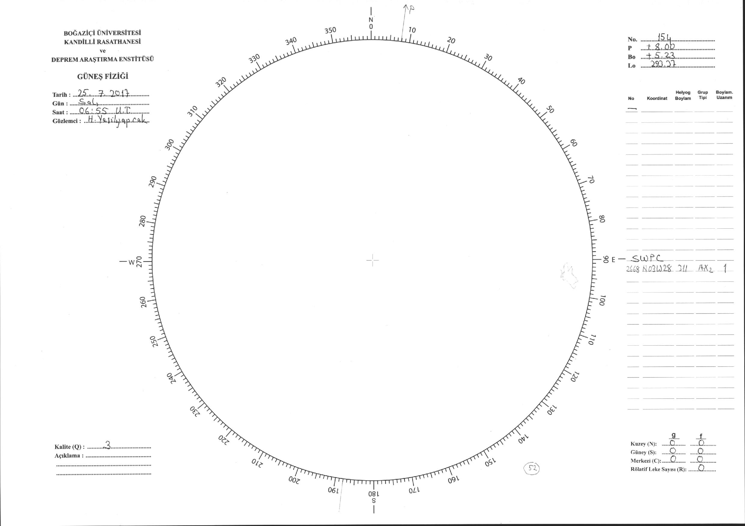 Güneş Lekesi Çizimi - 25.07.2017