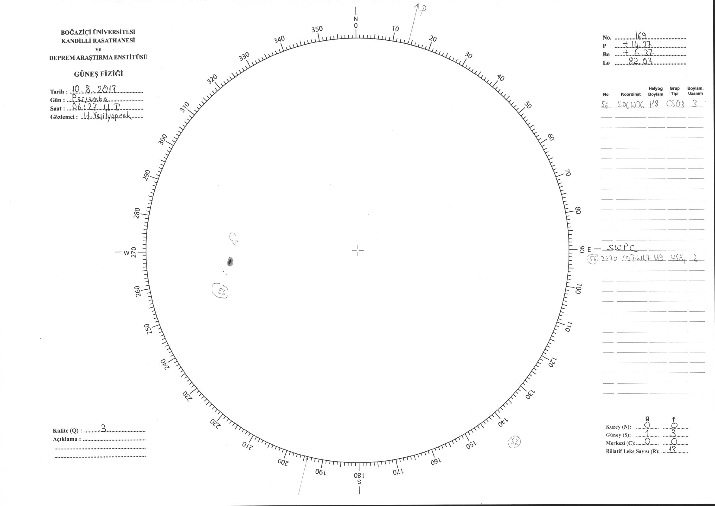 Güneş Lekesi Çizimi - 10.08.2017