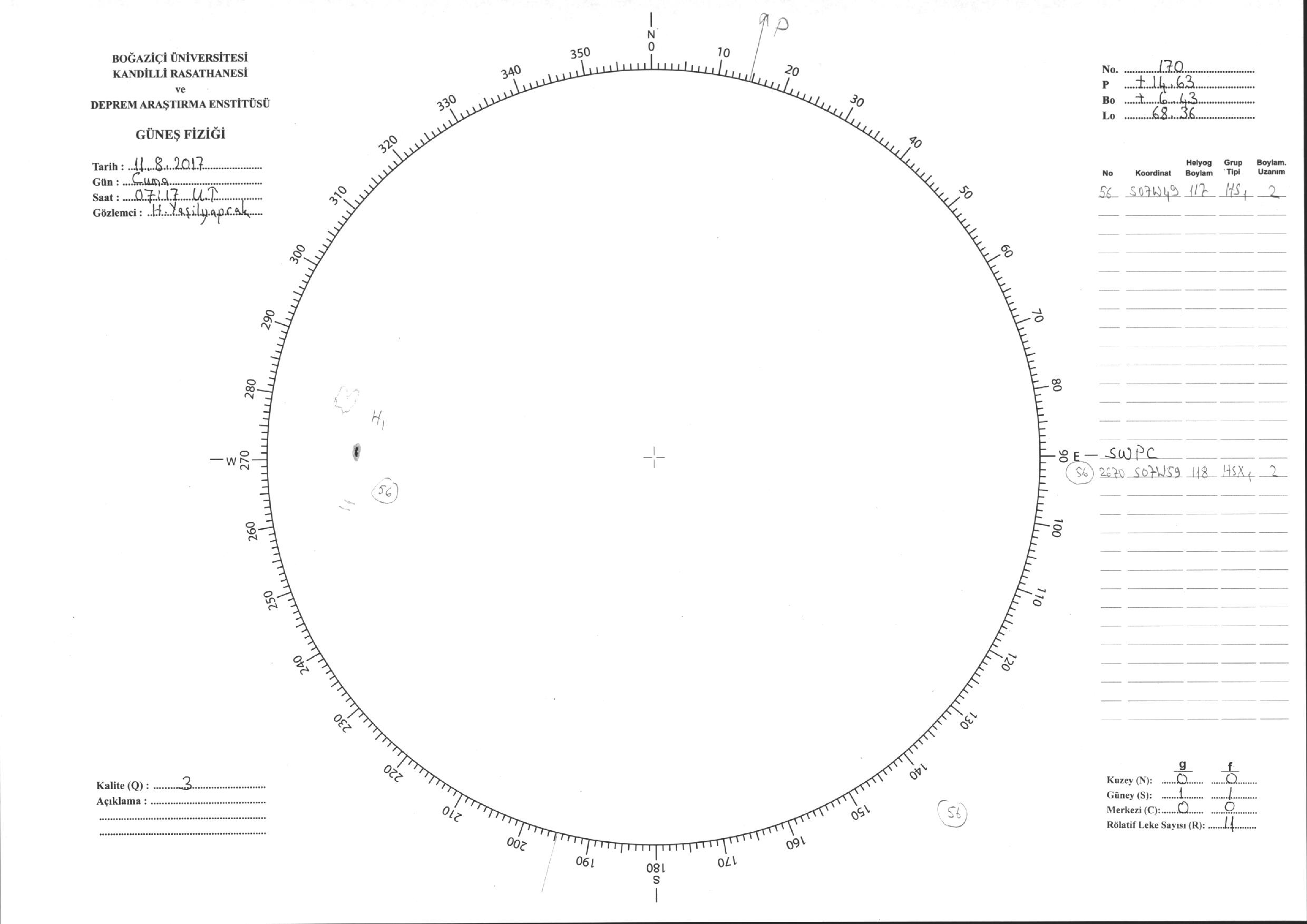 Güneş Lekesi Çizimi - 11.08.2017