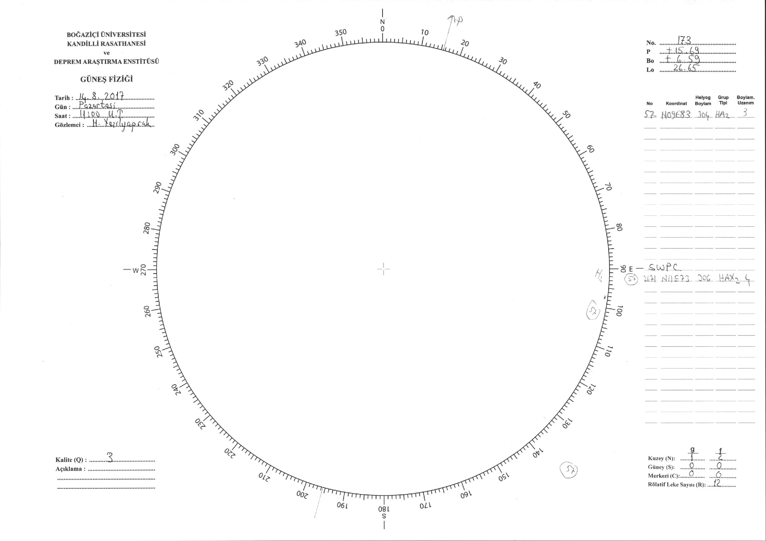 Güneş Lekesi Çizimi - 14.08.2017