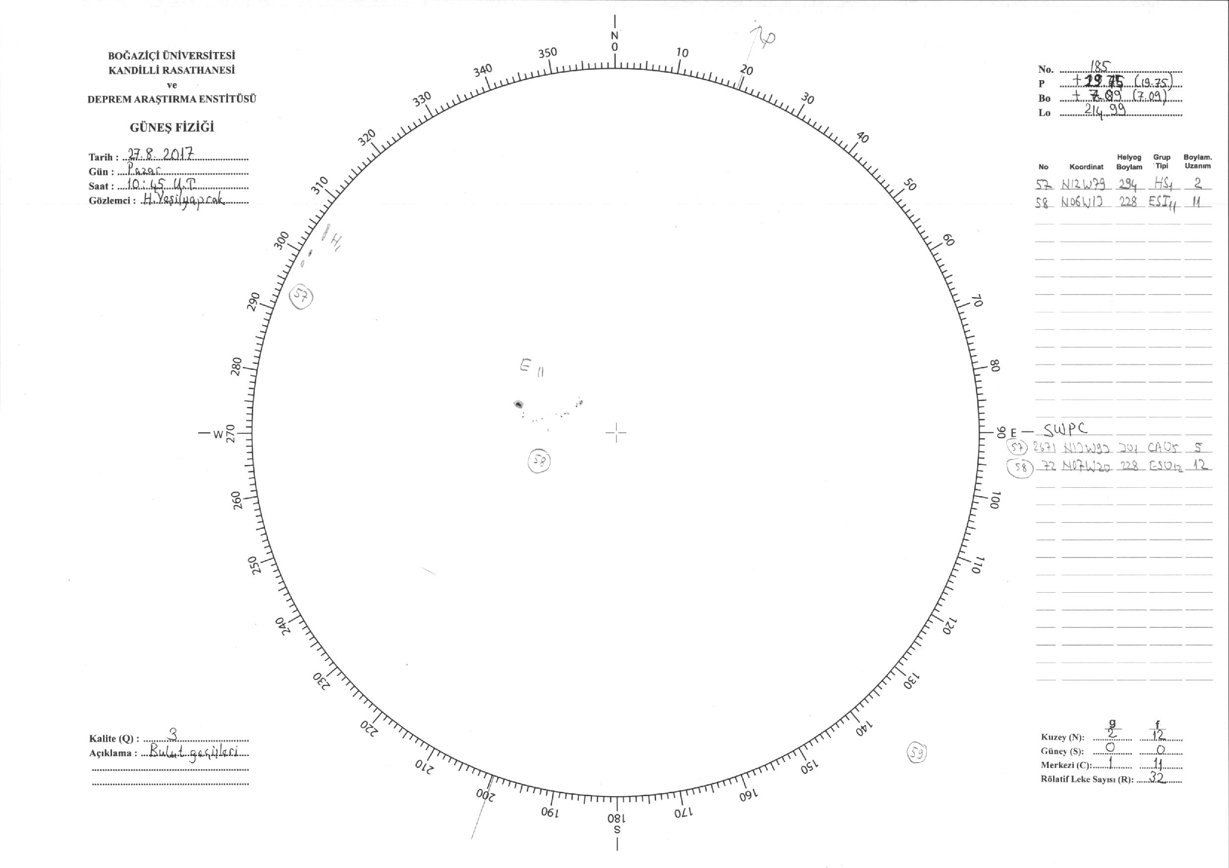Güneş Lekesi Çizimi - 27.08.2017