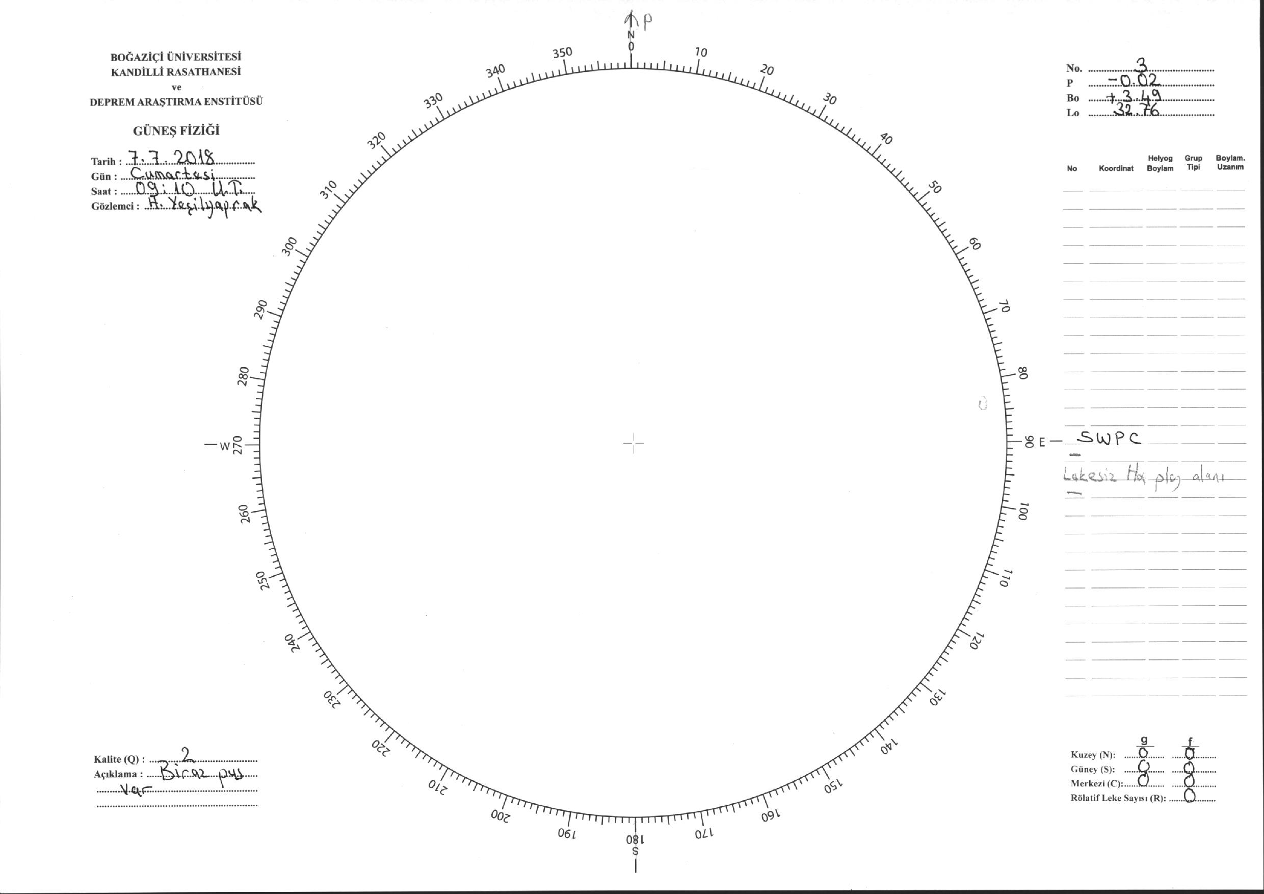 Güneş Lekesi Çizimi - 07.07.2018