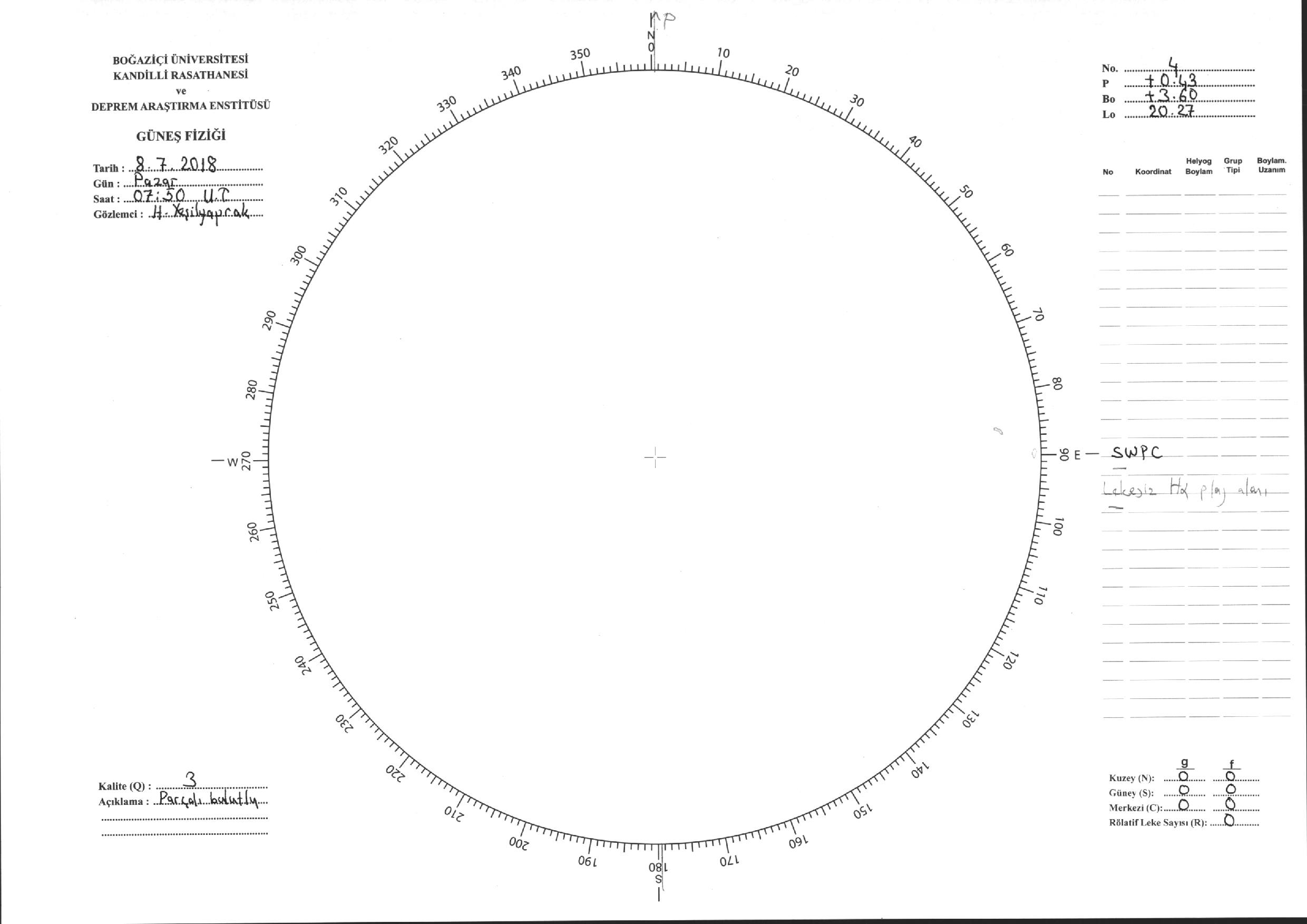 Güneş Lekesi Çizimi - 08.07.2018