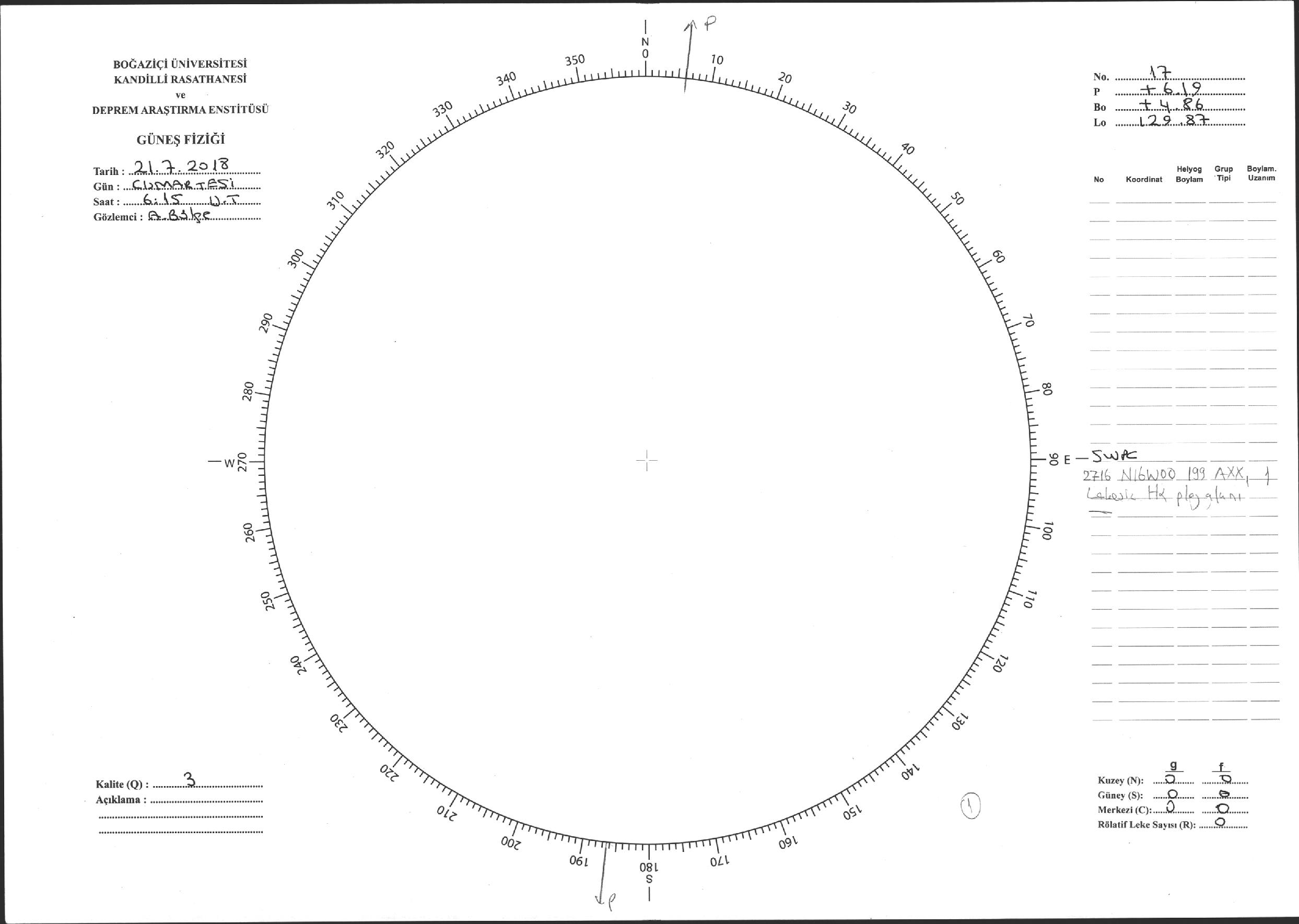 Güneş Lekesi Çizimi - 21.07.2018